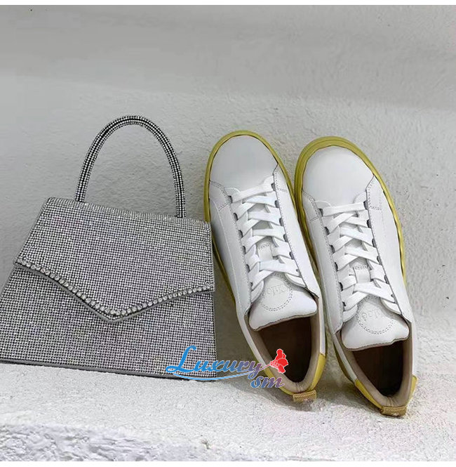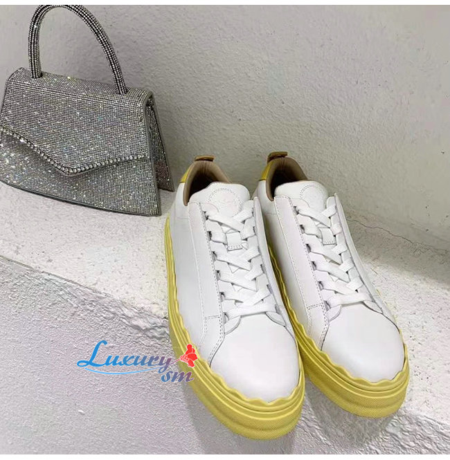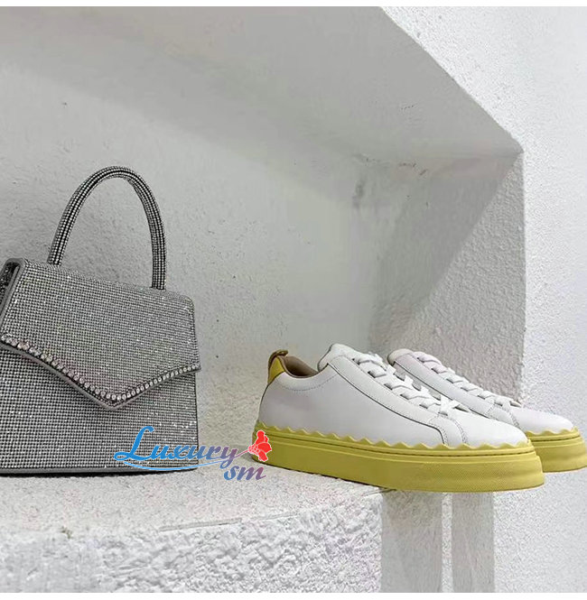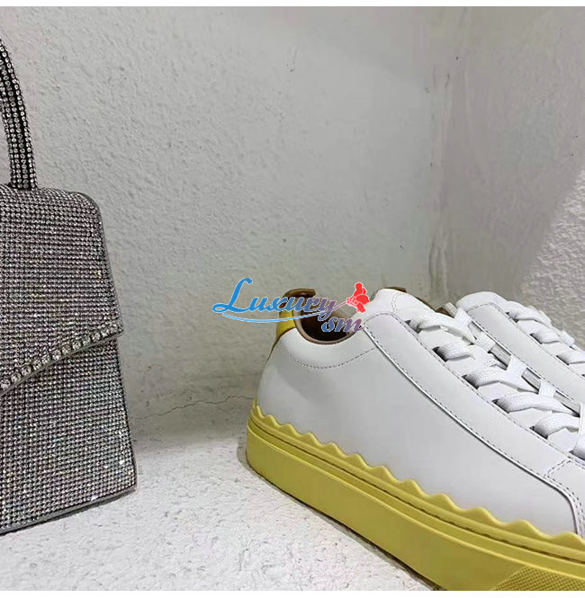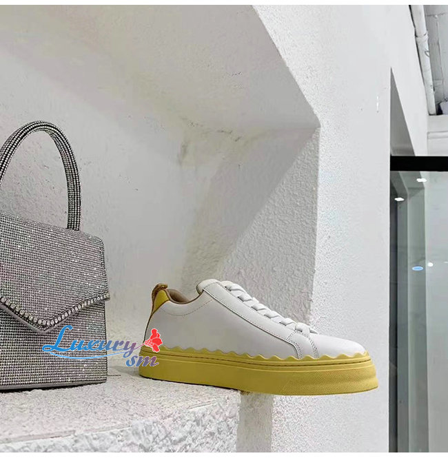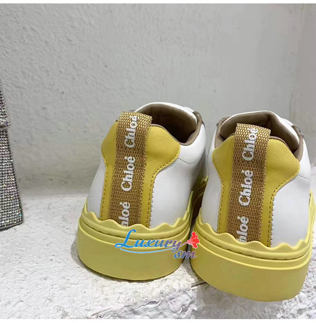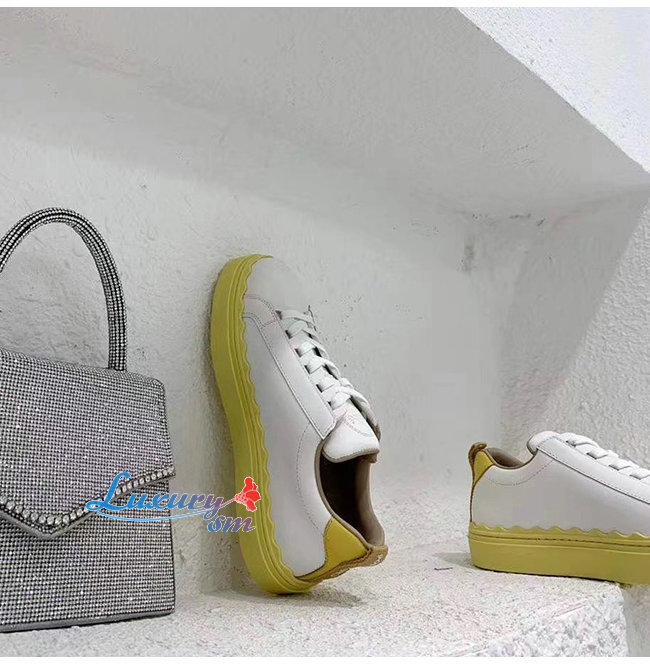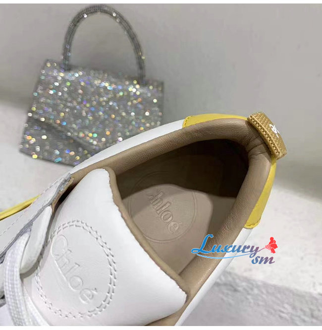 Chloe-CHC20U 끌로에 화이트/옐로우 카프스킨 Lauren 스니커즈 여성용