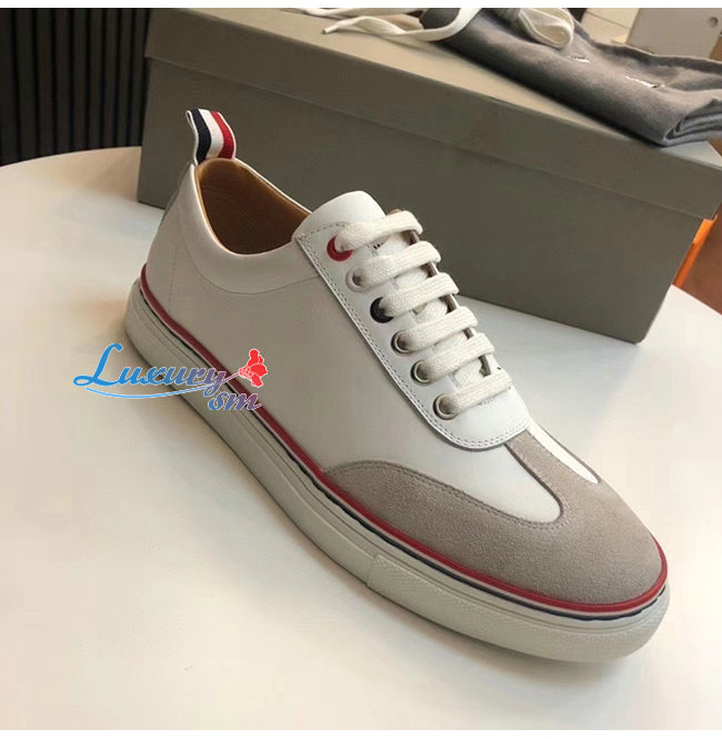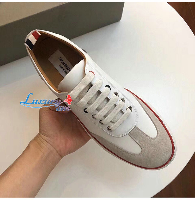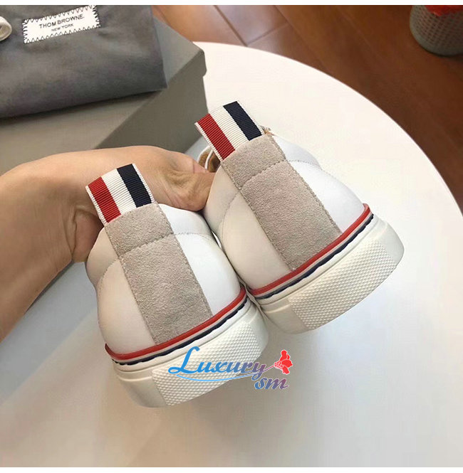 THOM BROWNE-137A061 톰 브라운 화이트 러버 카프스킨 트레이너 슈즈 남여공용