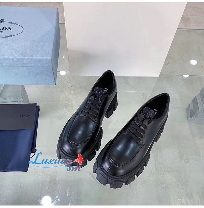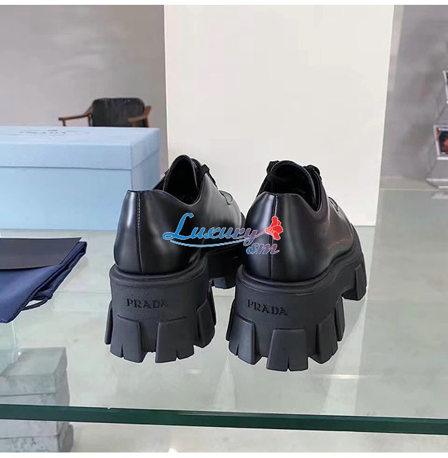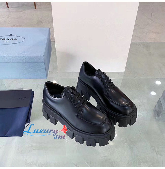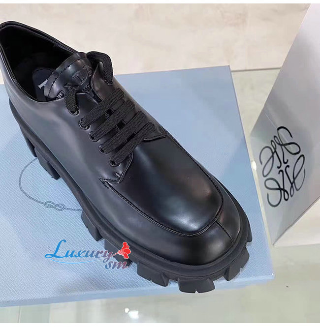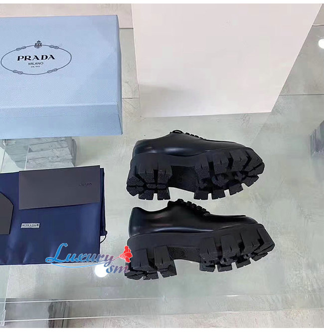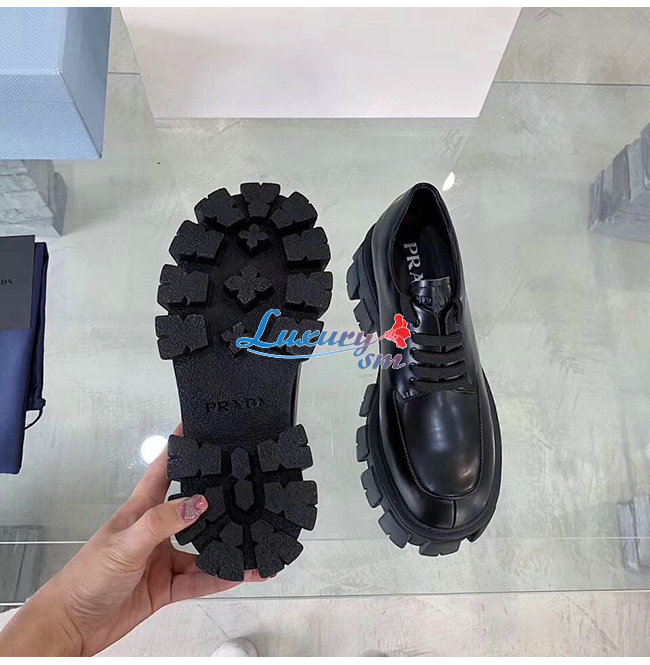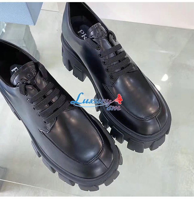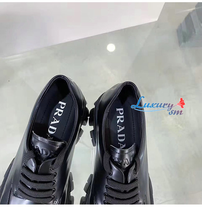 PRADA-1E708L 프라다 블랙 모노라이트 페이턴트 가죽 레이스 더비 슈즈