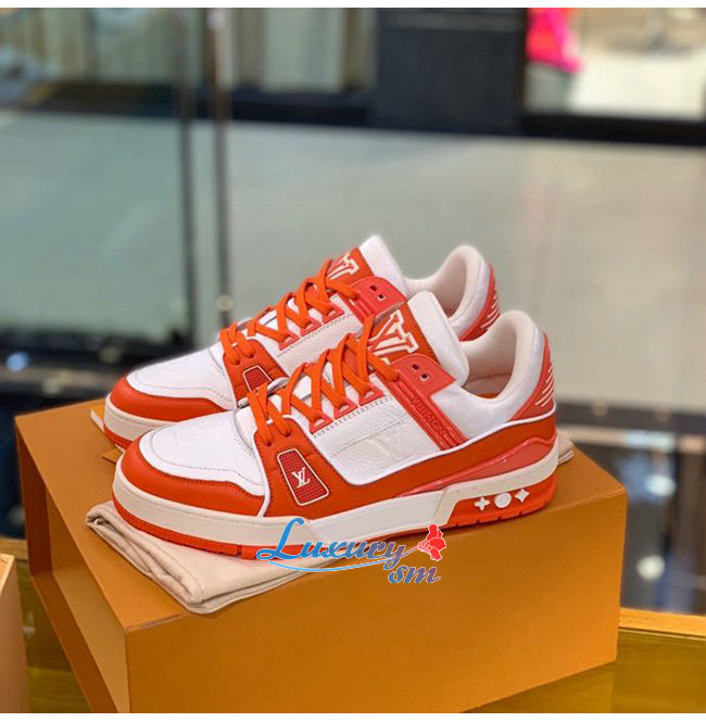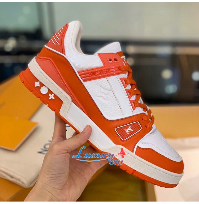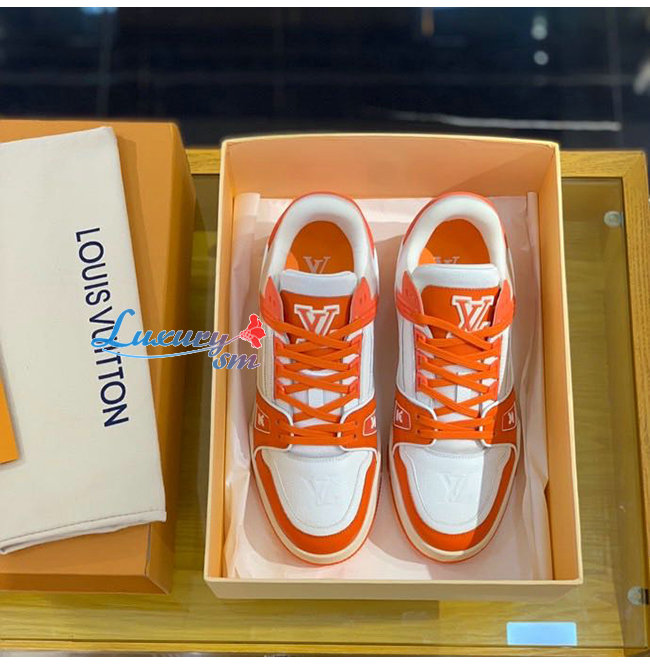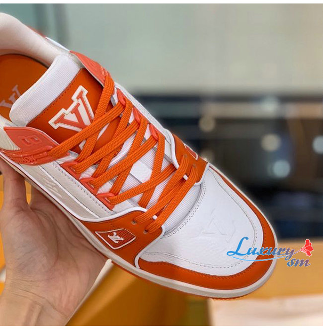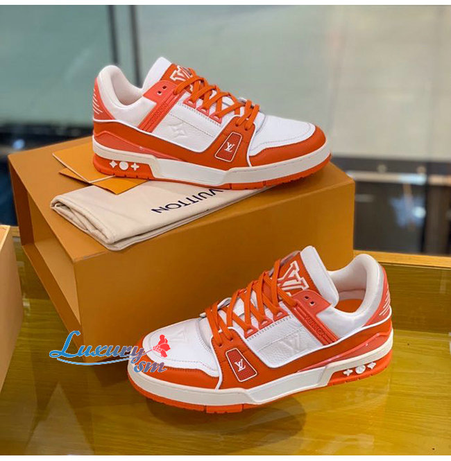 [스페셜오더]LOUIS VUITTON-1A811H 루이비통 오렌지 모노그램 엠보스드 그레인 송아지 가죽 LV 트레이너 스니커즈
