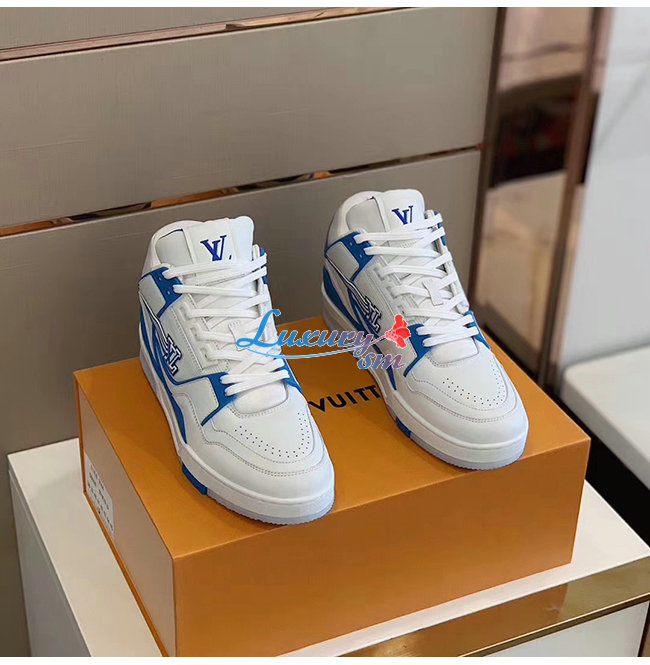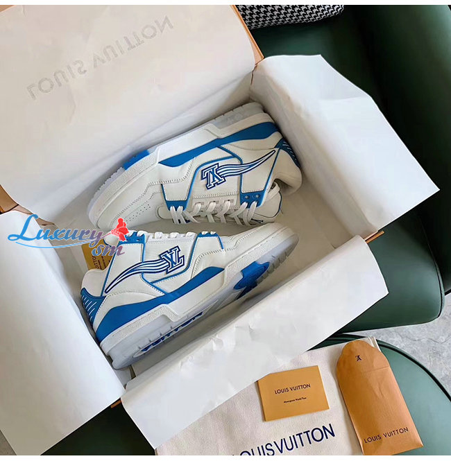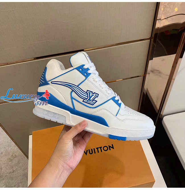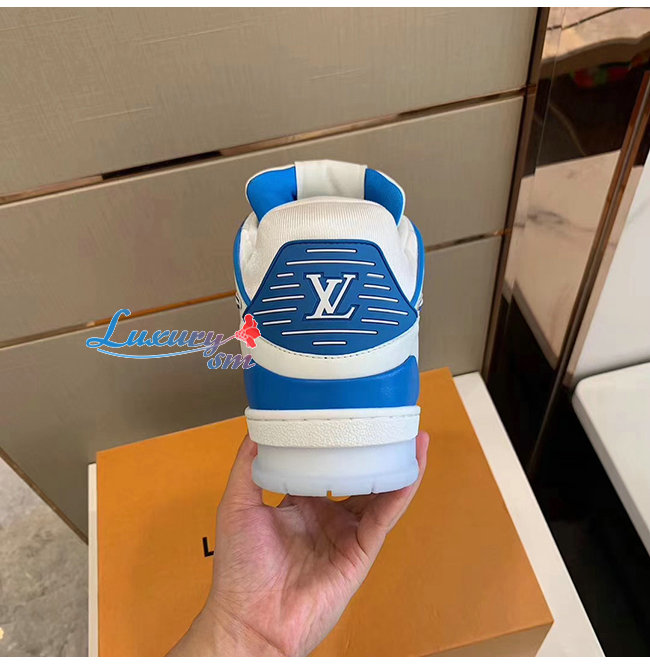 LOUIS VUITTON-1A8AGO 루이비통 블루/화이트 송아지 가죽 LV 트레이너 스니커즈