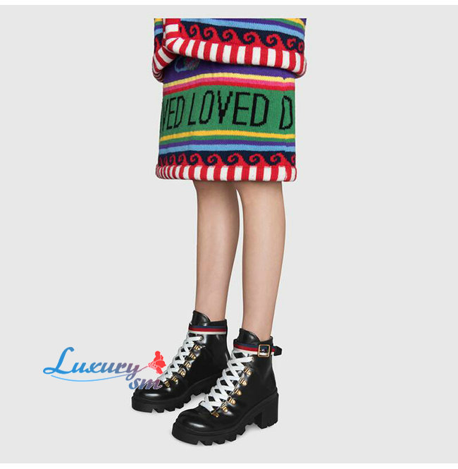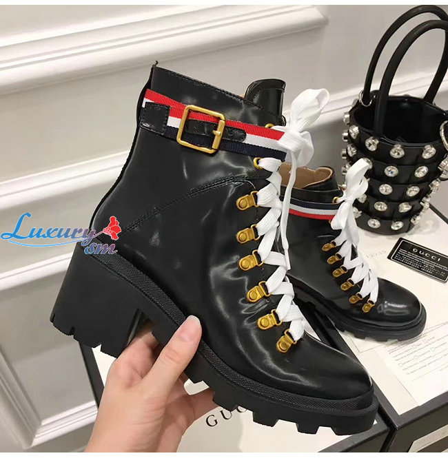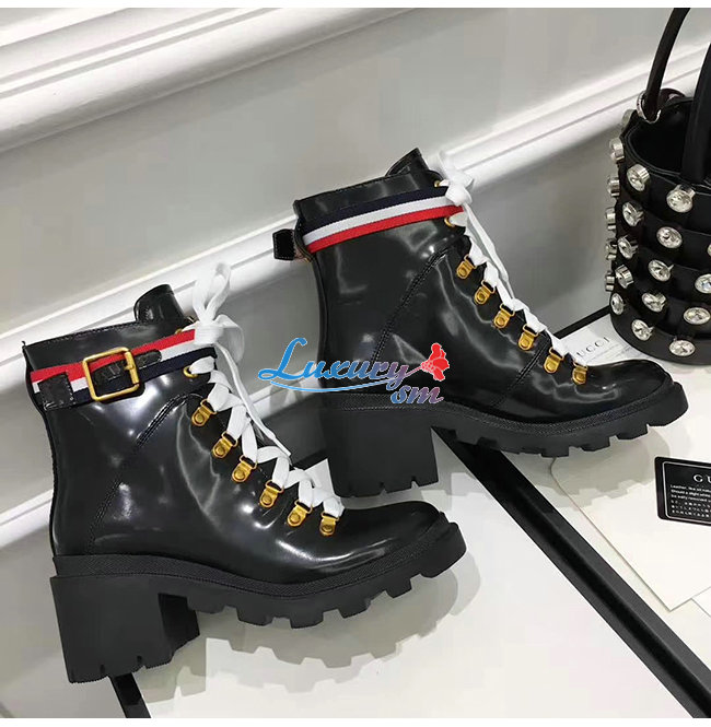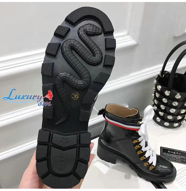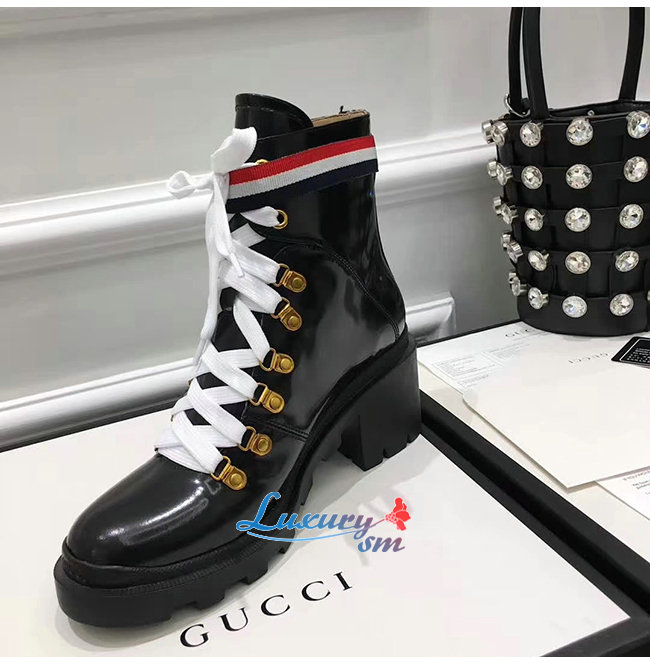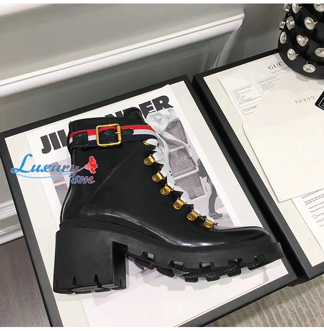 GUCCI-481156 1159 구찌 실비 블랙 가죽 웹(Web) 디테일 앵클 부츠