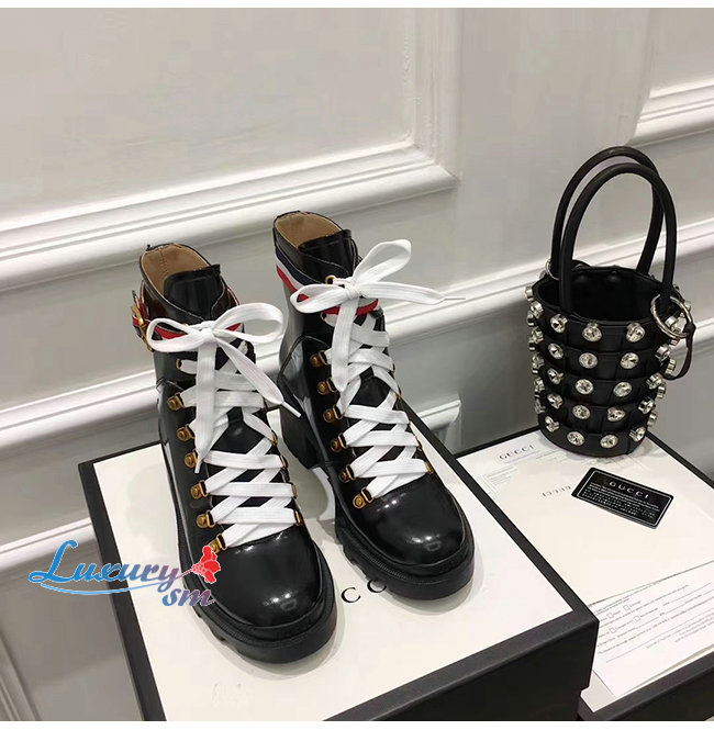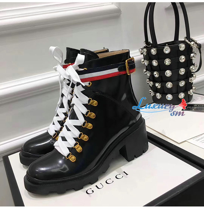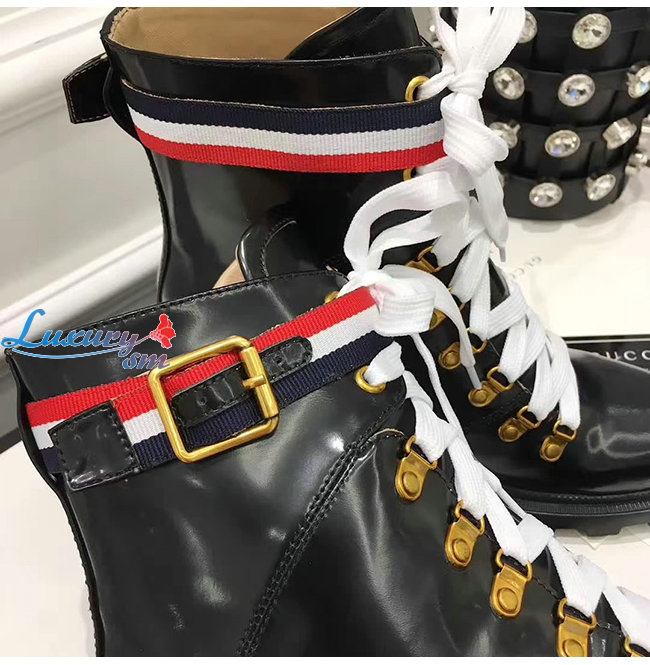 GUCCI-550036 1000 구찌 블랙 가죽 크리스털 장식 앵클 부츠