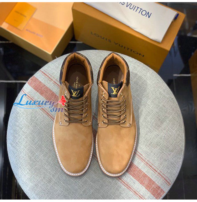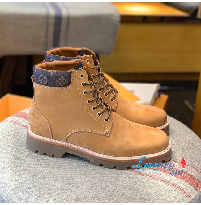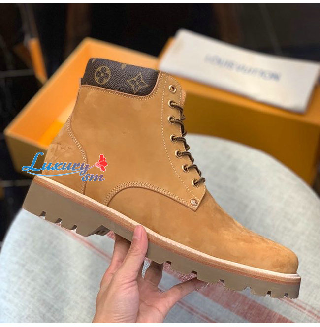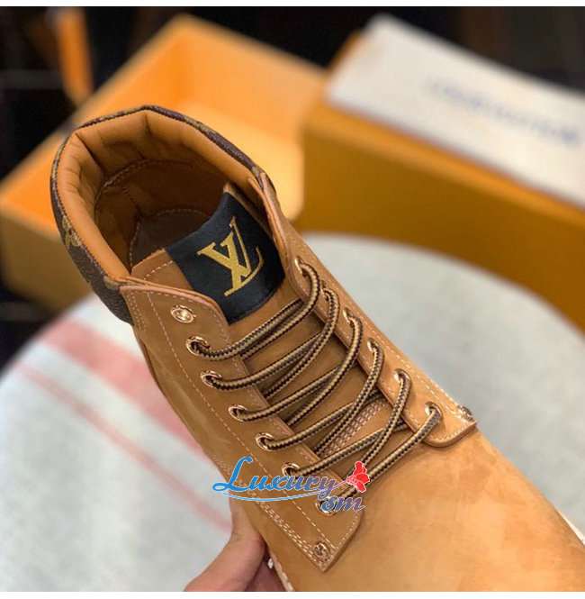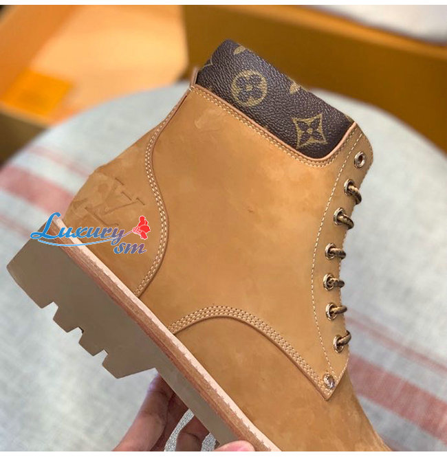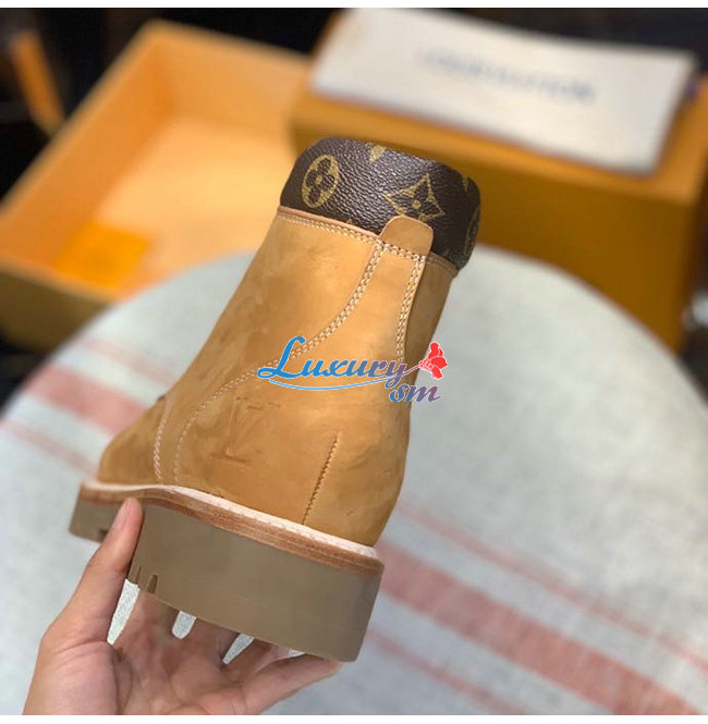 LOUIS VUITTON-1A7WMS 루이비통 브라운 누벅 가죽 모노그램 디테일 OBERKAMPF 앵클 부츠