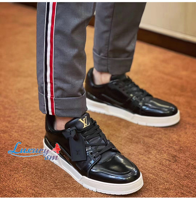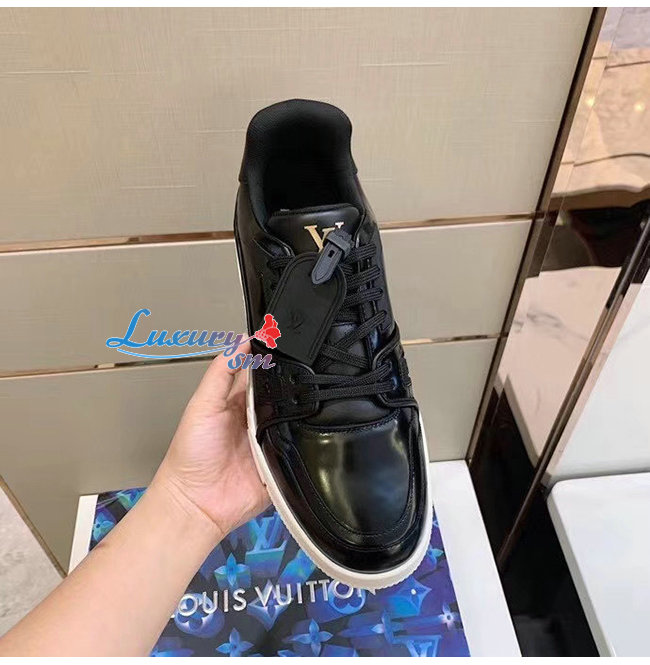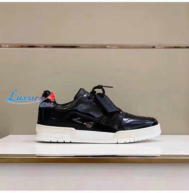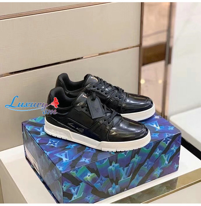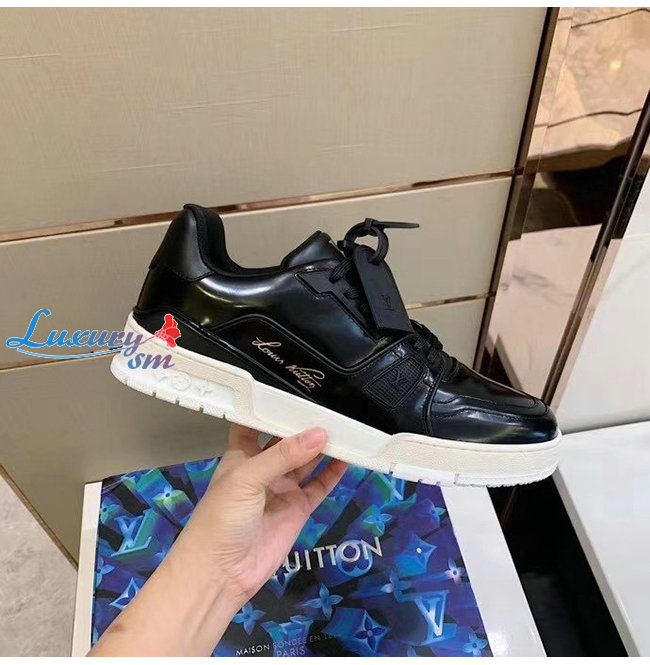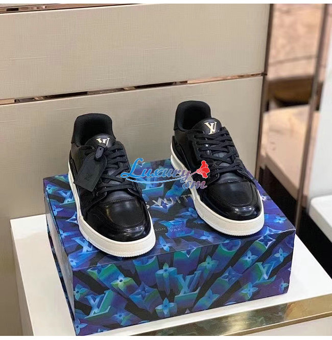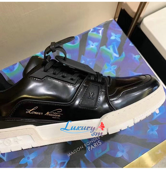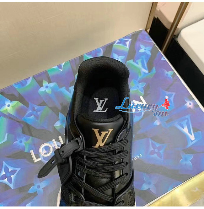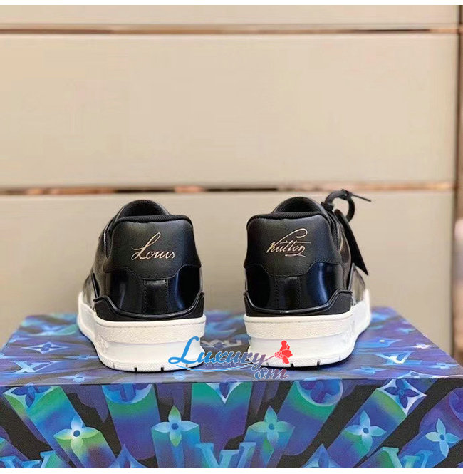LOUIS VUITTON-1A8IJU 루이비통 블랙 글레이즈드 카프스킨 LV 트레이너 스니커즈