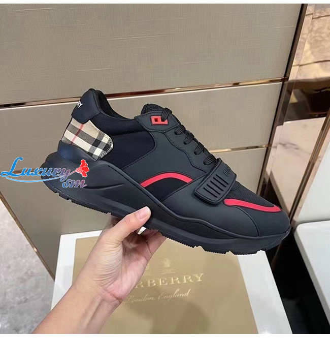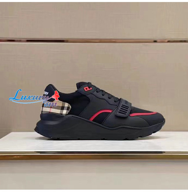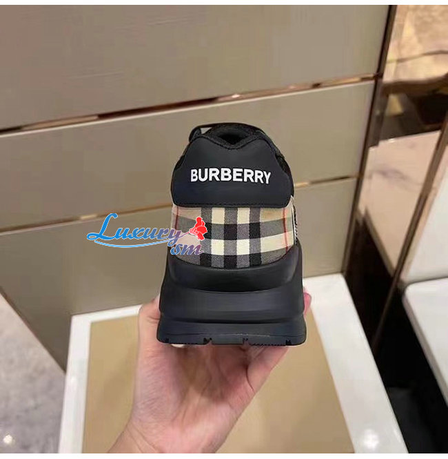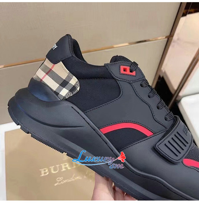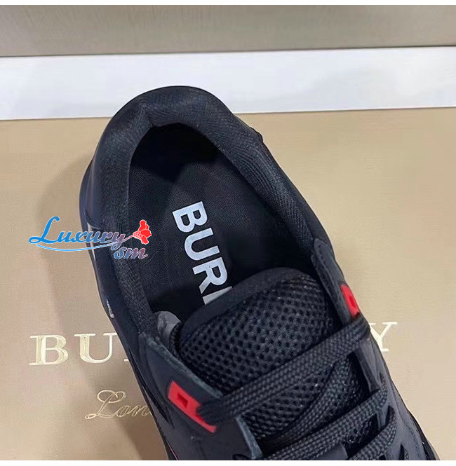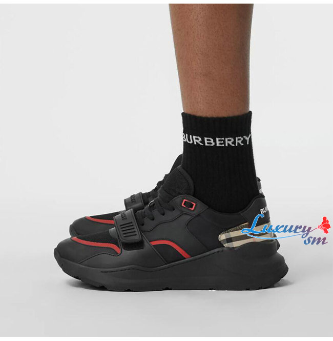 BURBERRY-80341271 버버리 블랙 빈티지 체크 레더 메시 스니커즈