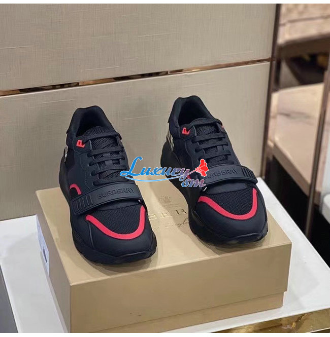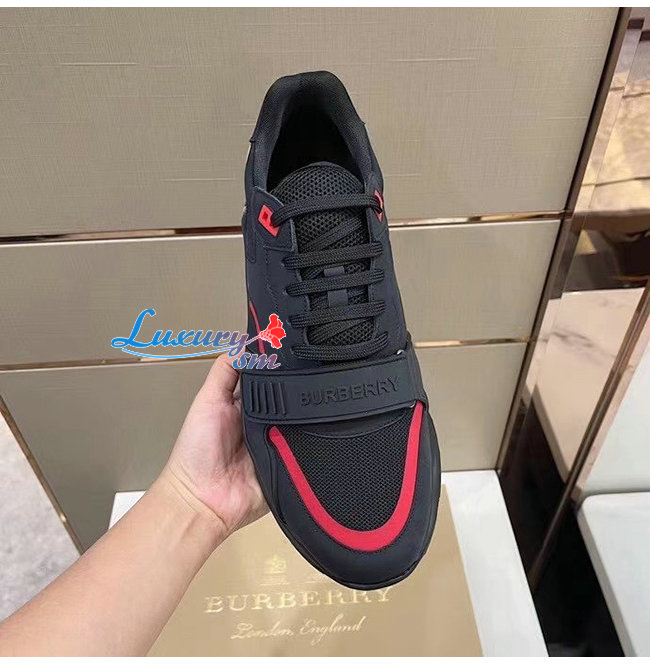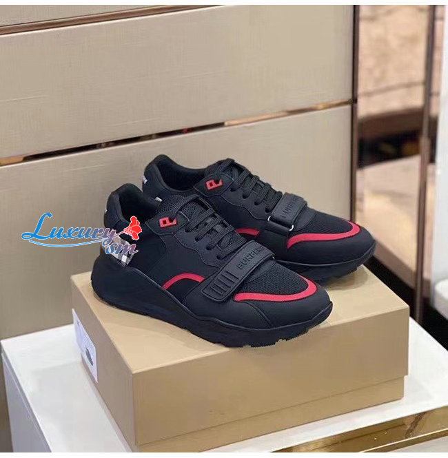 BURBERRY-80372561 버버리 브라이트 오렌지/블랙 스웨이드 레더 메시 스니커즈
