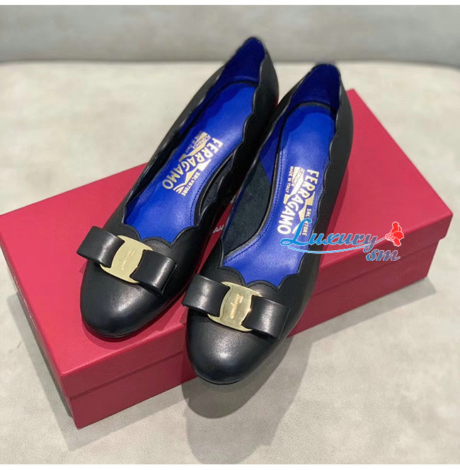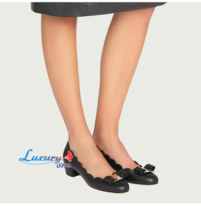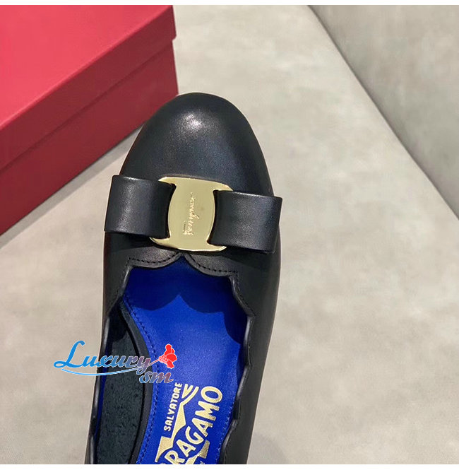 Ferragamo-01R389 페라가모 블랙 카프스킨 바라 쉘 펌프스