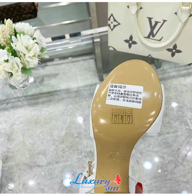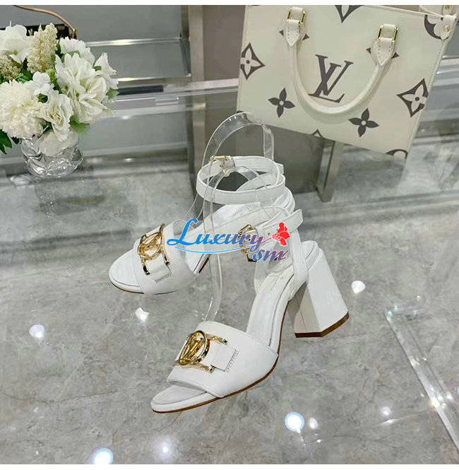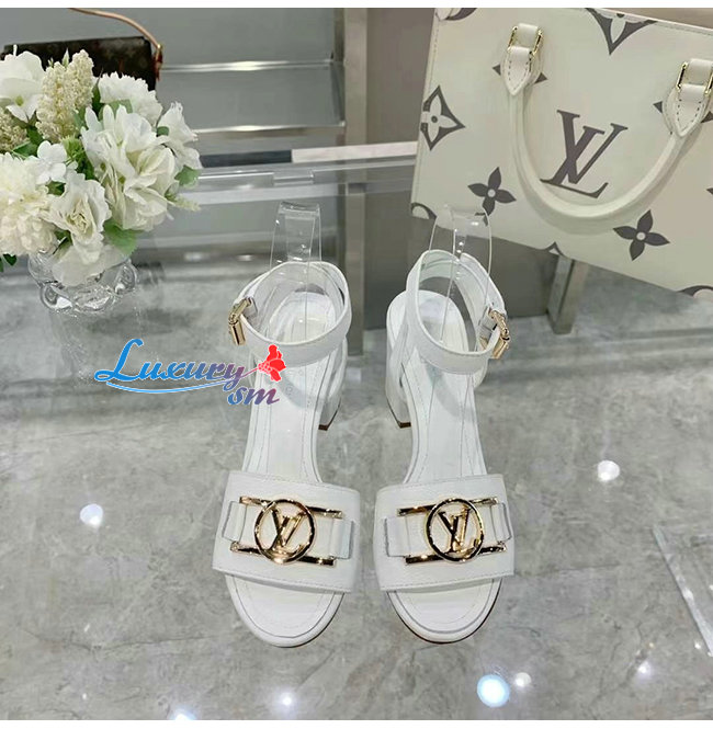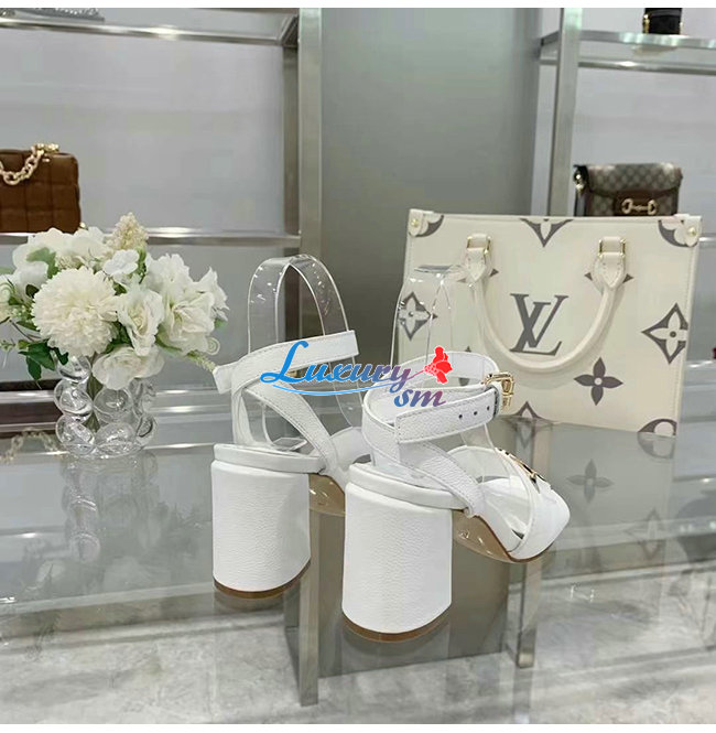 LOUIS VUITTON-1A8FWE 루이비통 화이트 그레인 송아지 가죽 락 잇 샌들