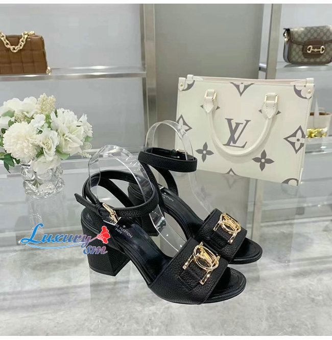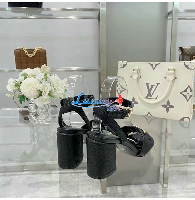 LOUIS VUITTON-1A8FWL 루이비통 블랙 그레인 송아지 가죽 락 잇 샌들