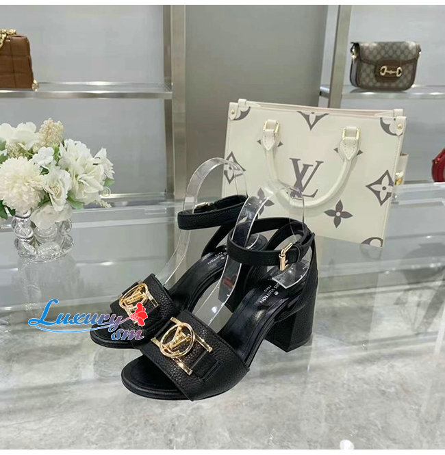 편안한 블록 힐 루이 비통이 각인된 버클로 조절 가능한