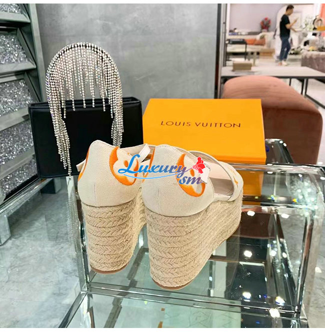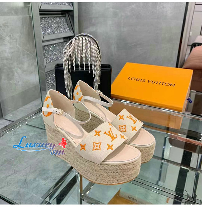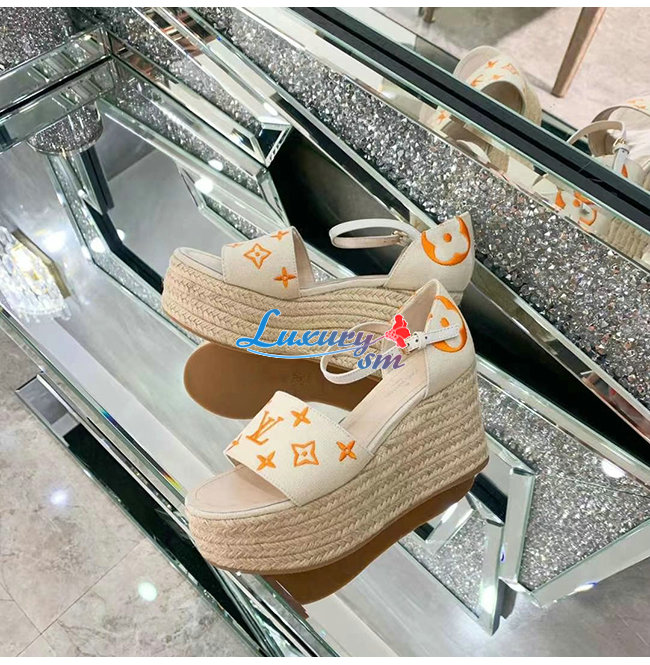 감싼 청키한 웨지 힐을 더해 루이 비통만의 여성스러운
