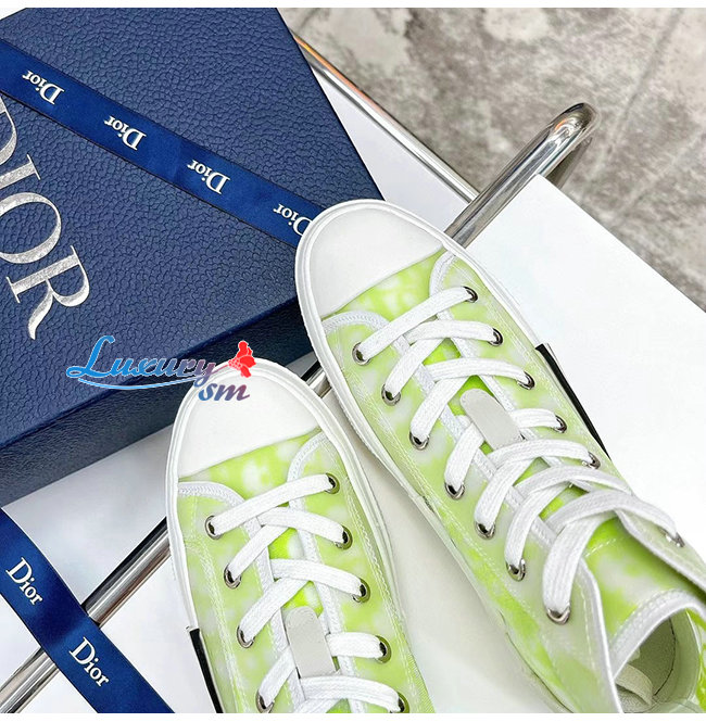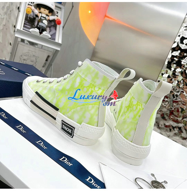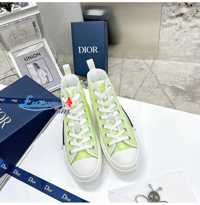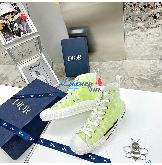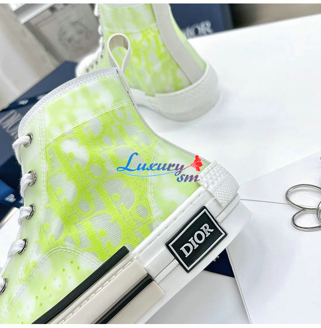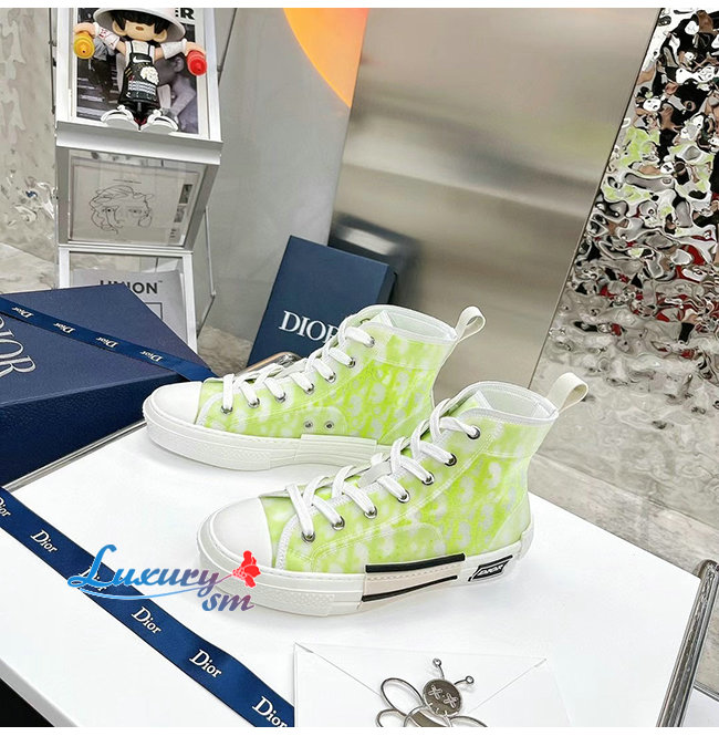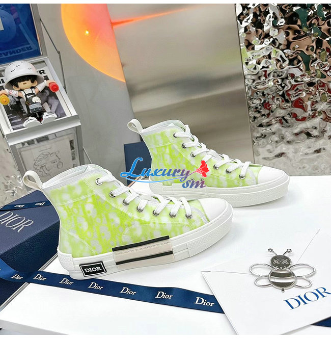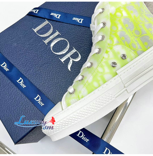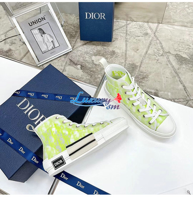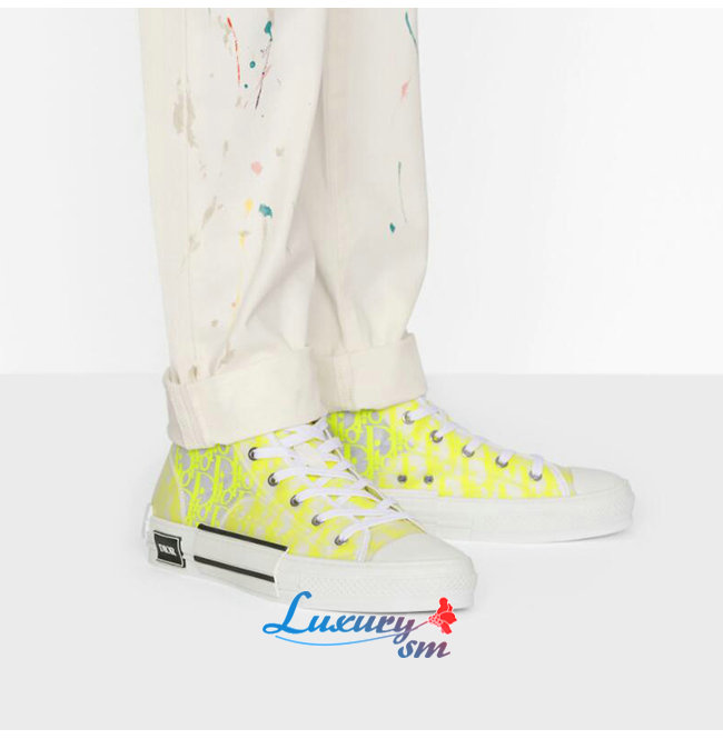 DIOR-3SH118 디올 옐로우/그린 DIOR AND SHAWN 모티브 캔버스 B23 하이탑 스니커즈 남여공용