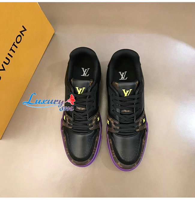 LOUIS VUITTON-1A8IJU 루이비통 블랙 글레이즈드 카프스킨 LV 트레이너 스니커즈