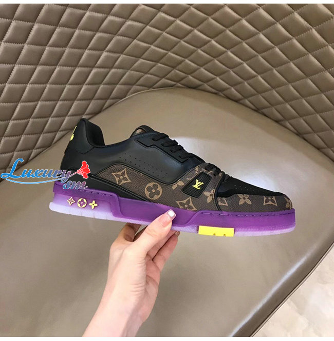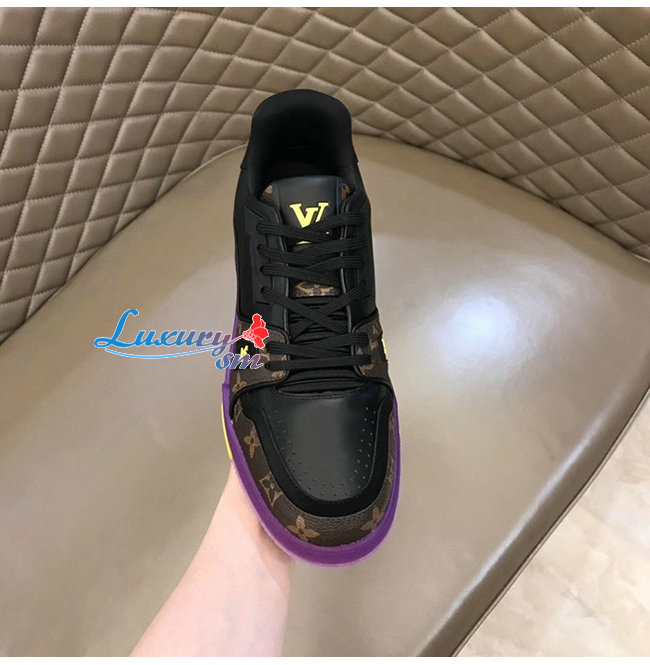 조화를 이루는 아이코닉한 LV 트레이너 스니커즈.