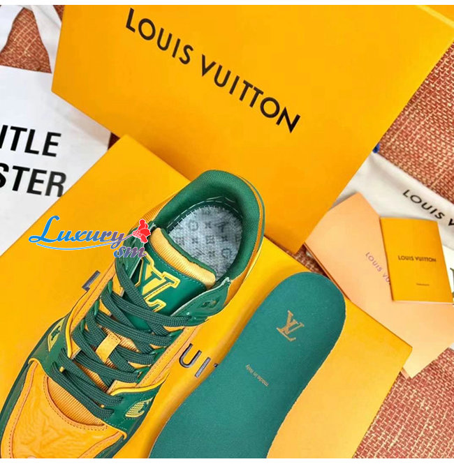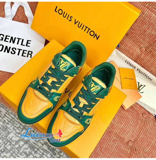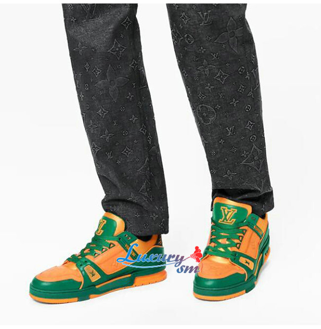 [스페셜오더]LOUIS VUITTON-1A8WG1 루이비통 그린/오렌지 모노그램 그레인 송아지 가죽 LV 트레이너 스니커즈