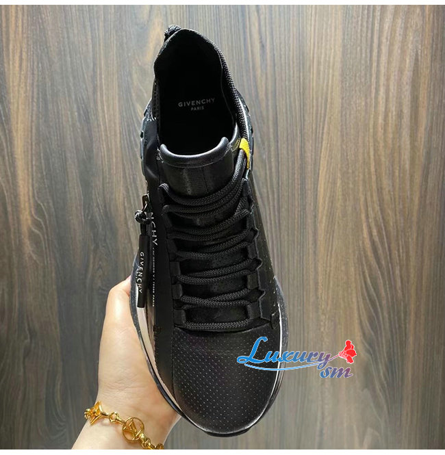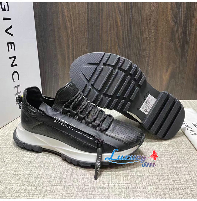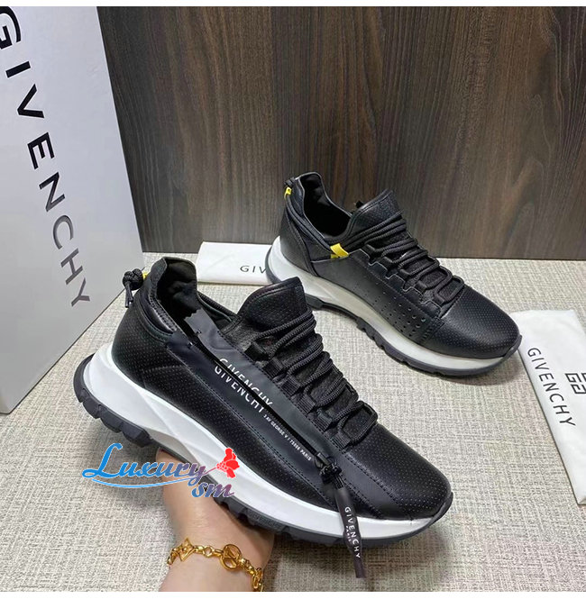 [스페셜오더]GIVENCHY-BH003MH 지방시 블랙 스펙터 지퍼 장식 퍼포레이티드 가죽 로우탑 러닝 슈즈 남성용