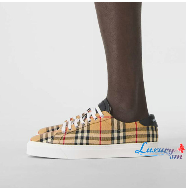 빈티지 체크 면과 가죽 소재의 로우톱 스니커즈 버버리