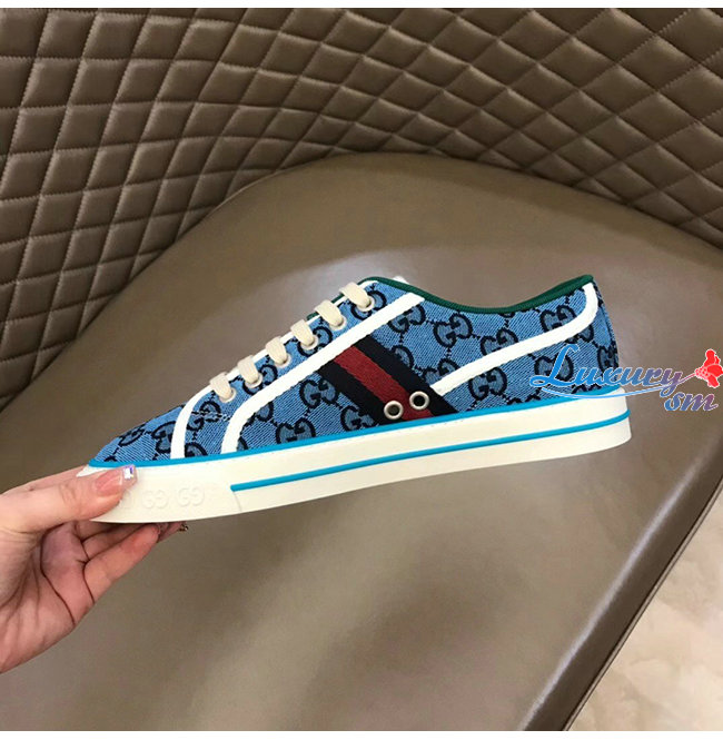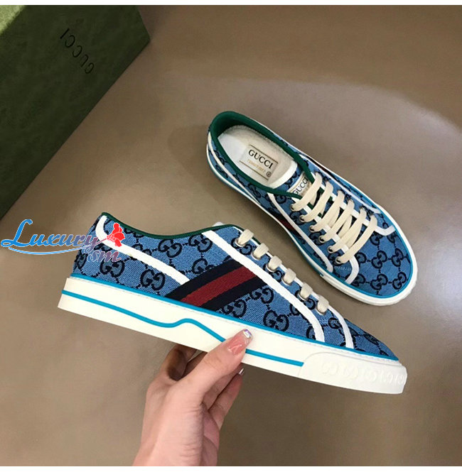 GUCCI-663657 4279 구찌 라이트 블루 구찌 테니스 1977 GG 스니커즈 남여공용