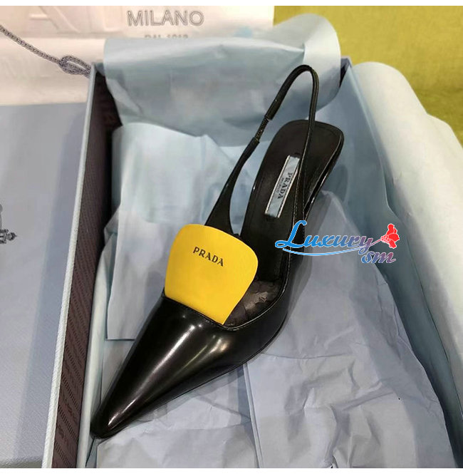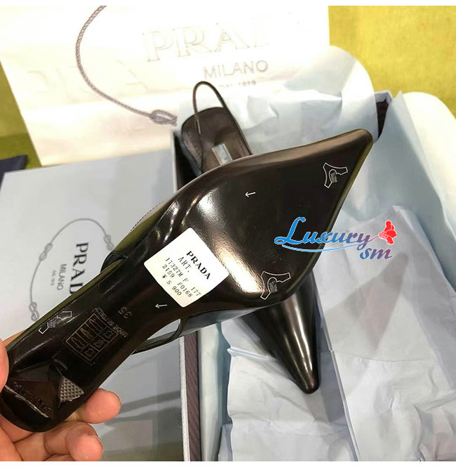 PRADA-1I561M 프라다 블랙 블러시드 가죽 슬링백 펌프스