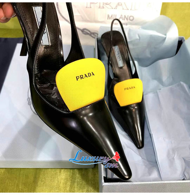 PRADA-1I561M 프라다 블랙/옐로우 블러시드 가죽 슬링백 펌프스