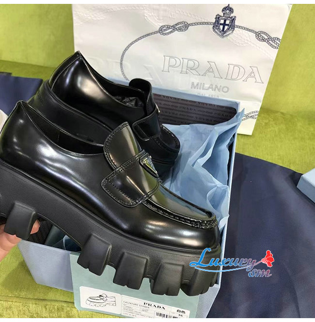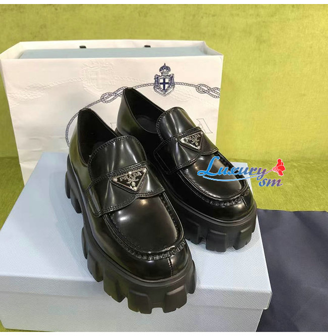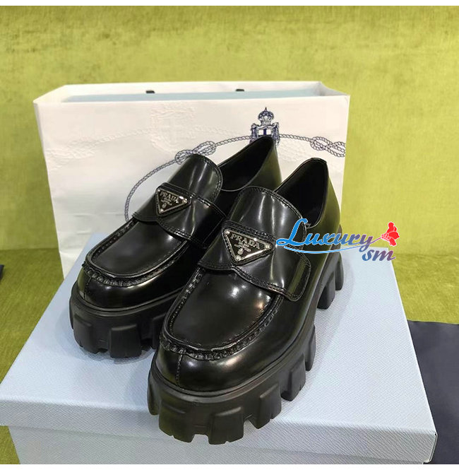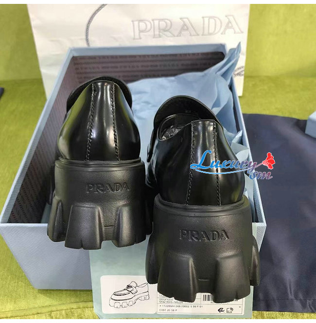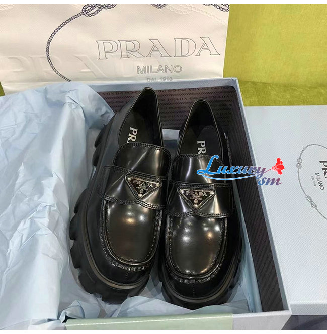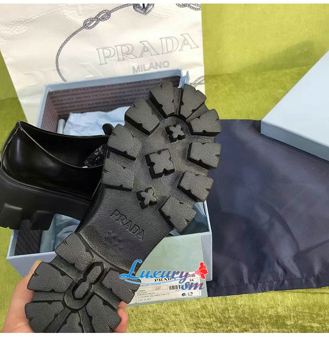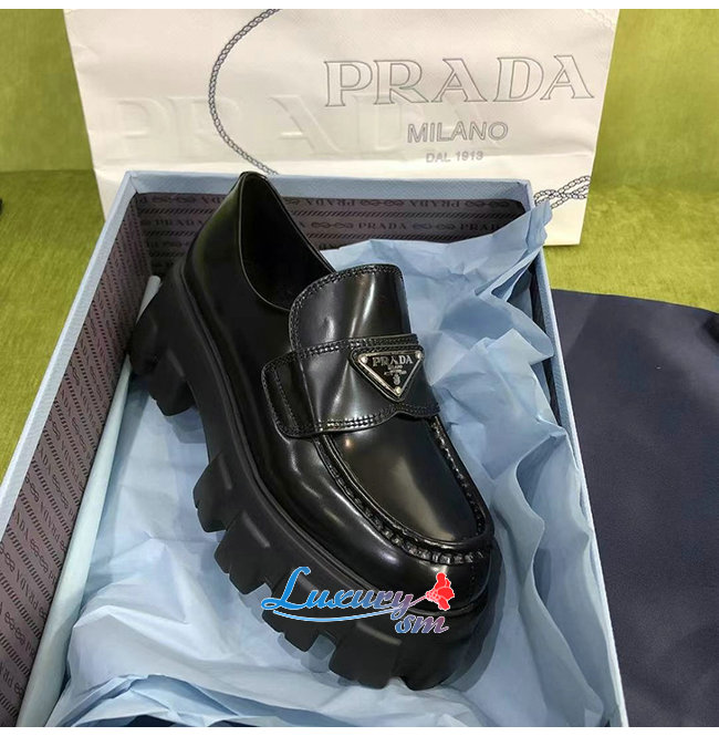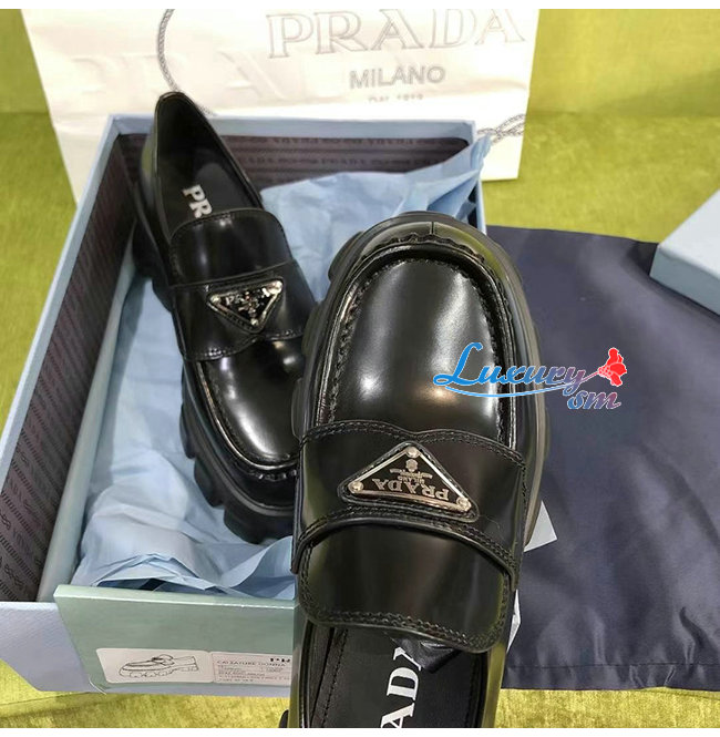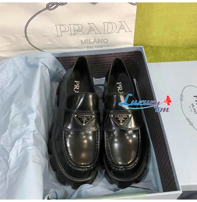 PRADA-1D663M 프라다 블랙 블러시드 가죽 포인티드 로퍼