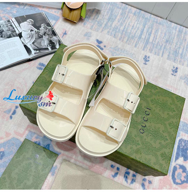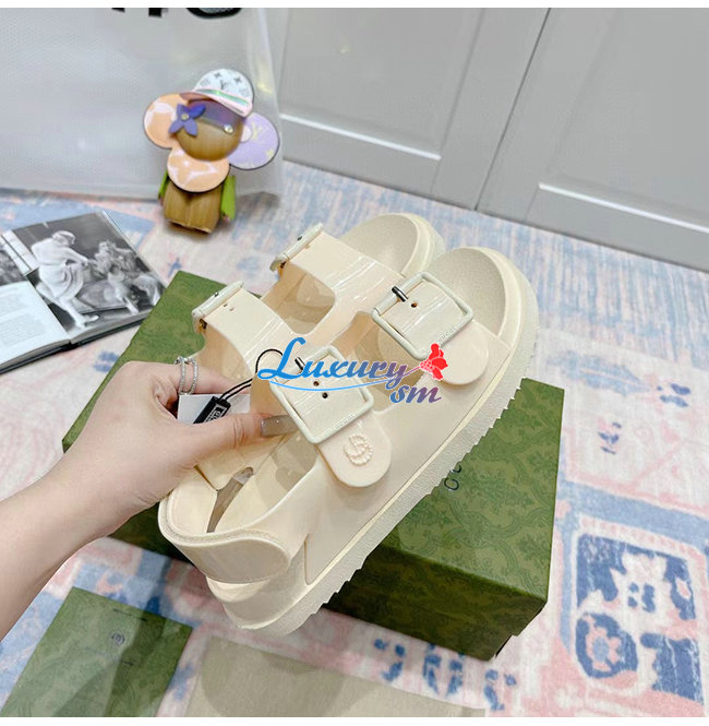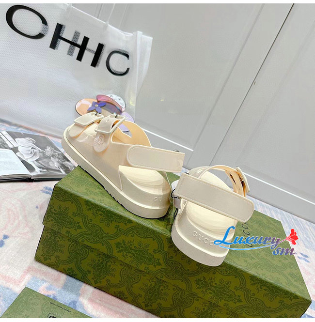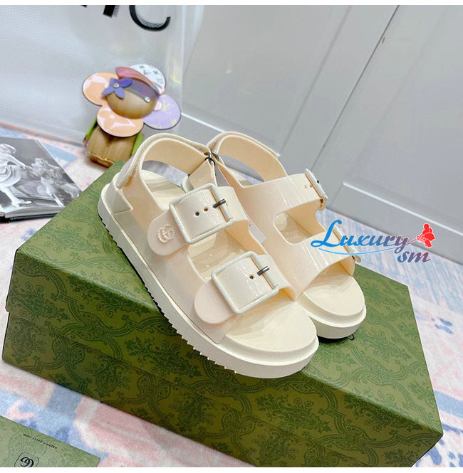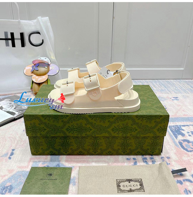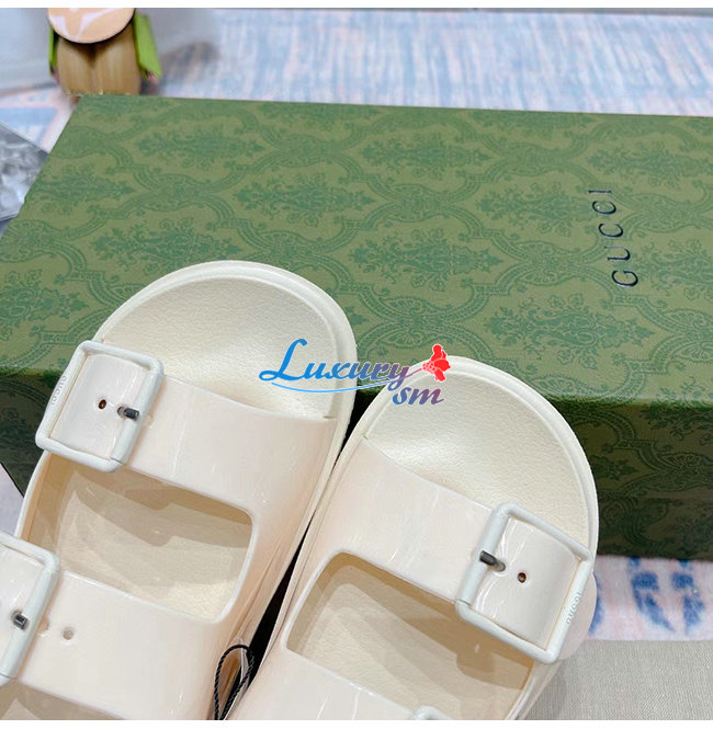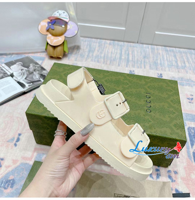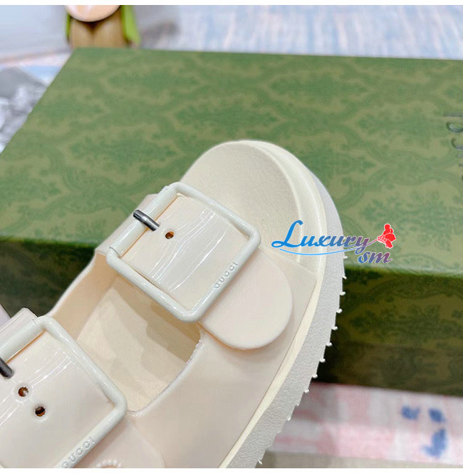 GUCCI-660243 9050 구찌 오프화이트 러버 미니 더블 G 샌들