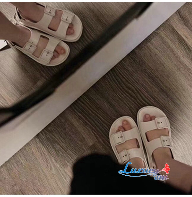 샌들의 섬세한 동일한컬러의 하우스 모노그램 메탈