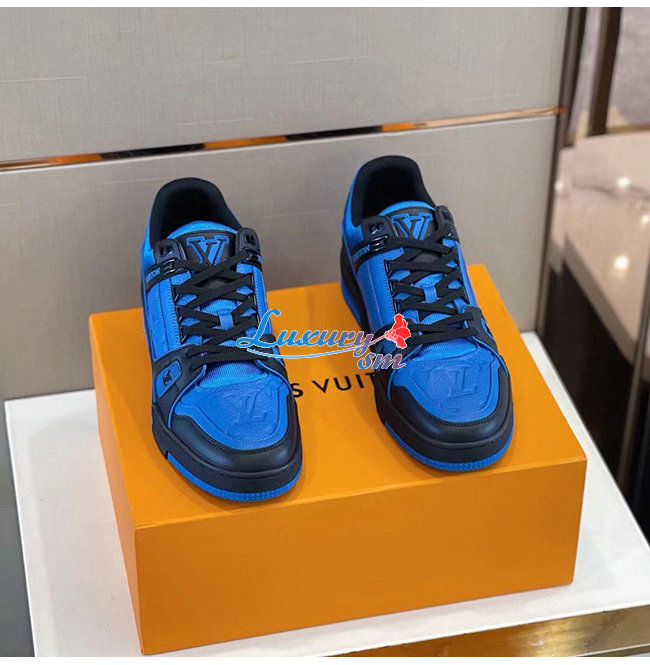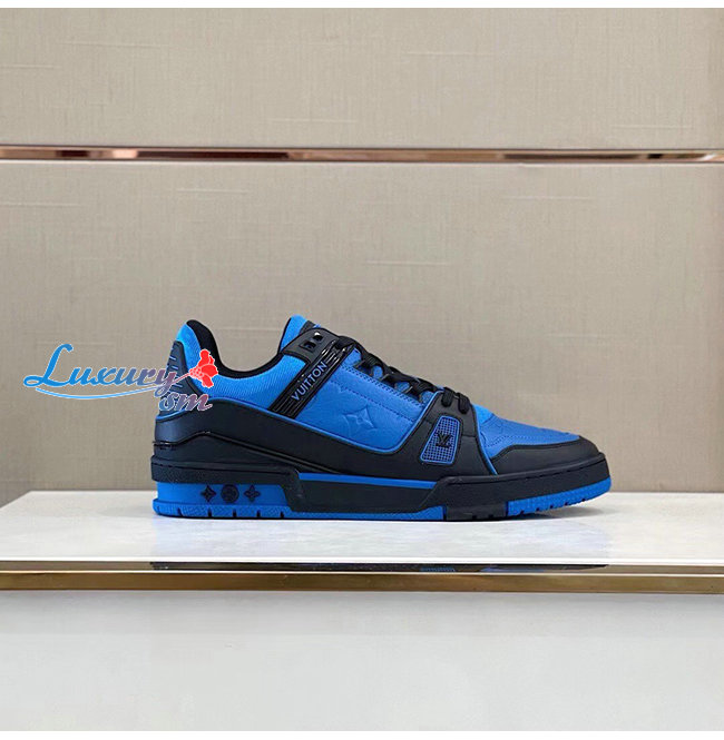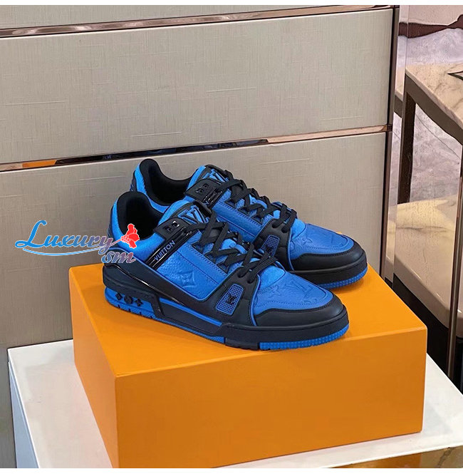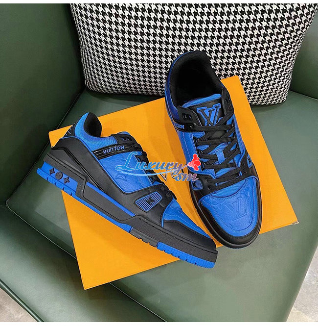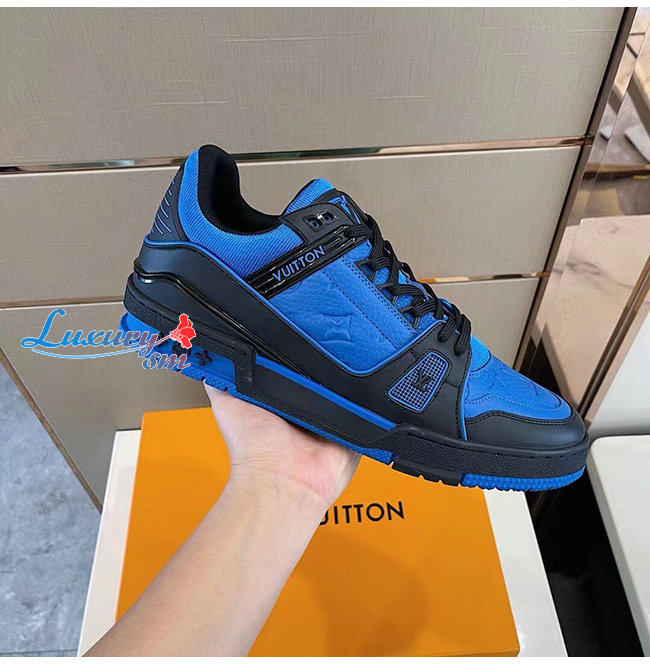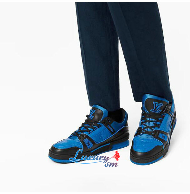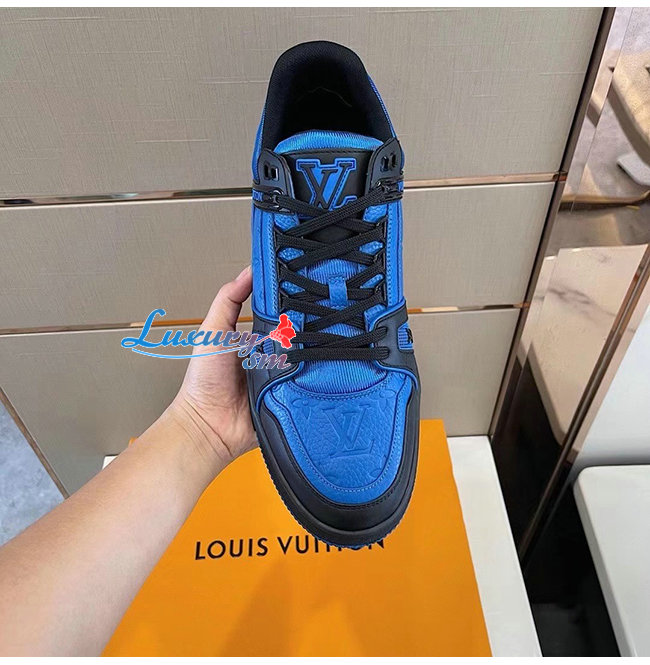 [스페셜오더]LOUIS VUITTON-1A8WF4 루이비통 블루/블랙 모노그램 그레인 송아지 가죽 LV 트레이너 스니커즈