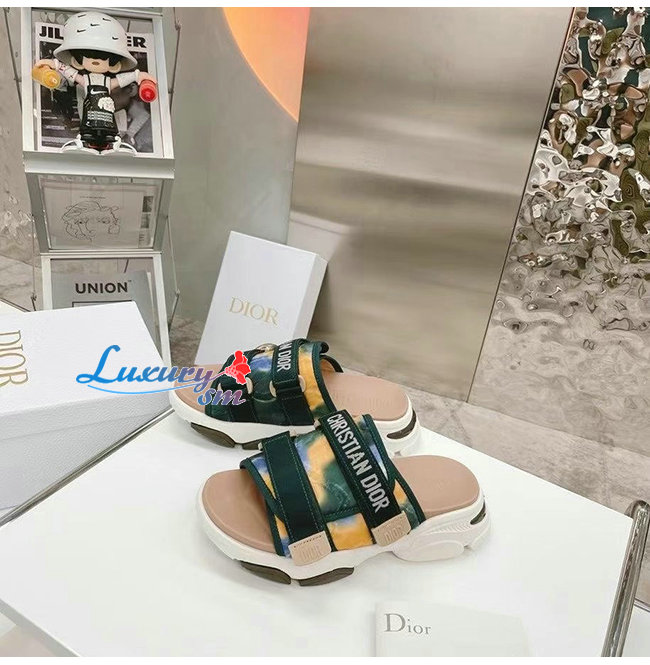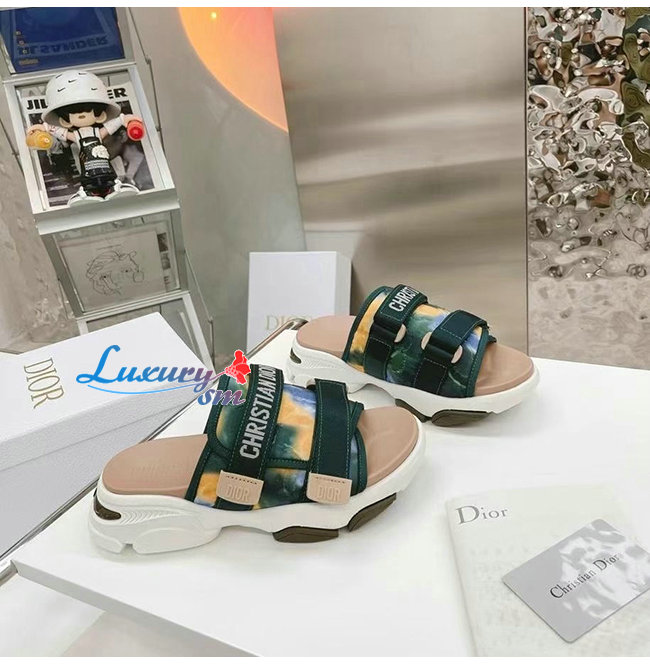 DIOR-KCQ351 디올 Mizza 멀티 컬러 베이지 프린트 테크니컬 패브릭 D-WANDER 뮬 여성용