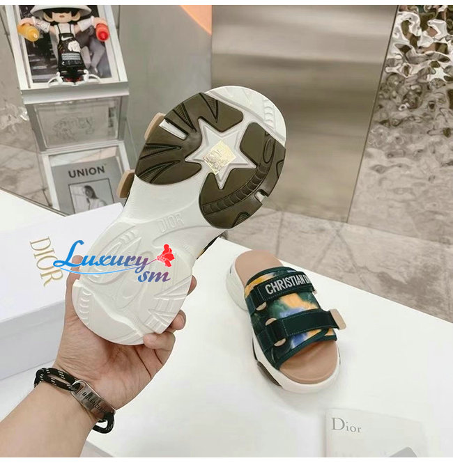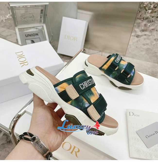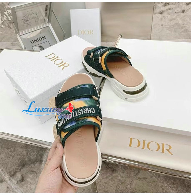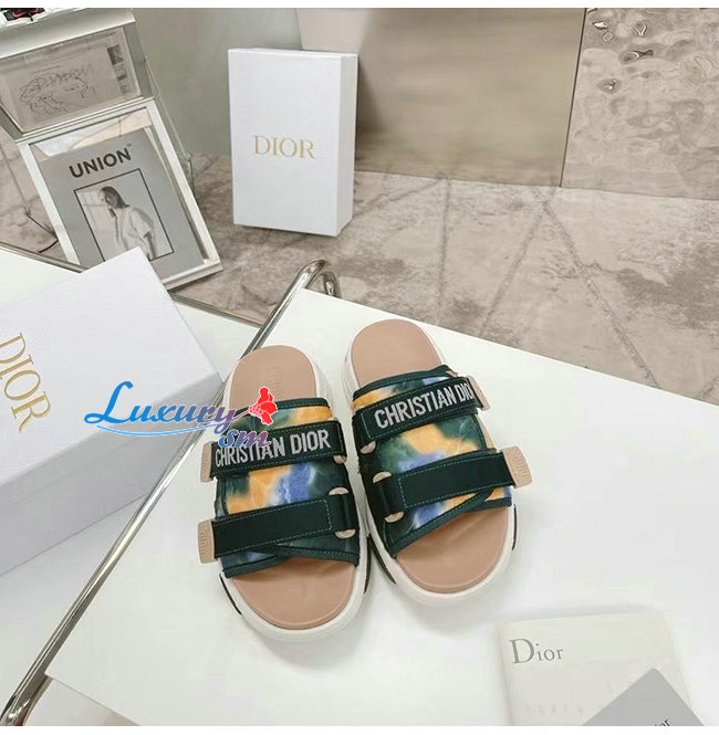 DIOR-KCQ351 디올 그린 Tie & Dior 테크니컬 패브릭 D-WANDER 뮬 여성용