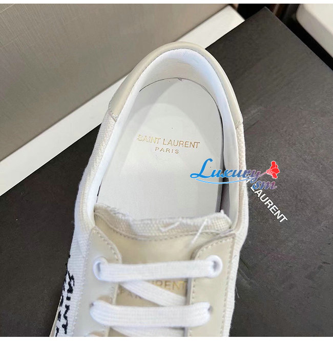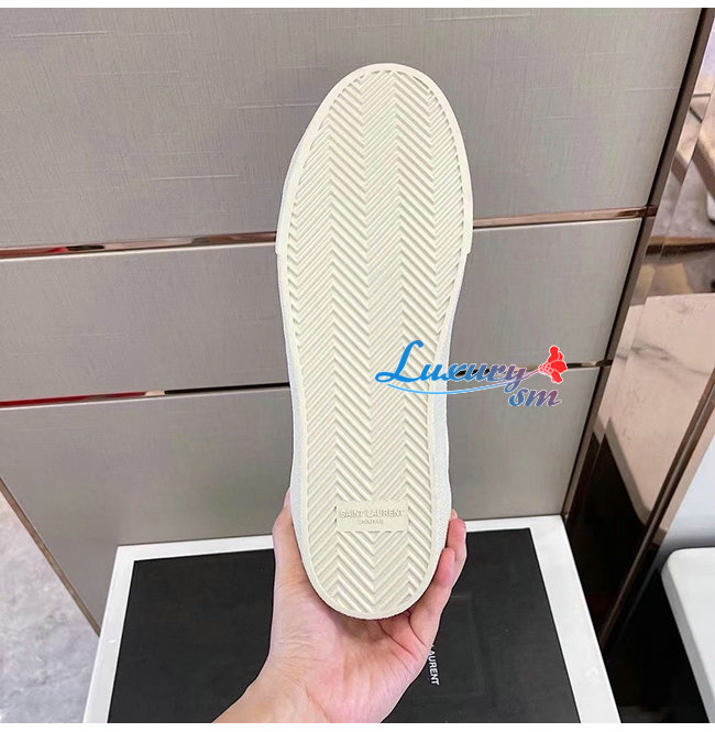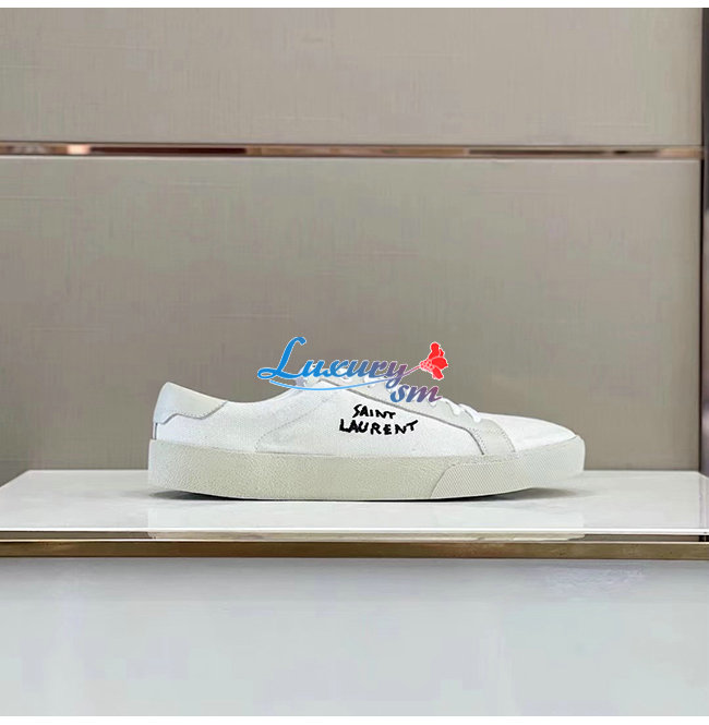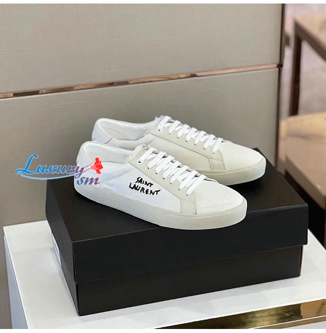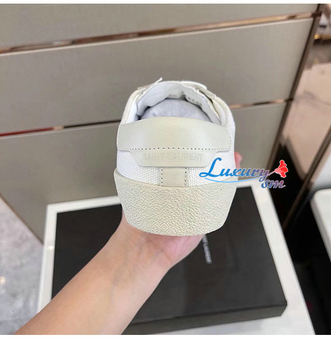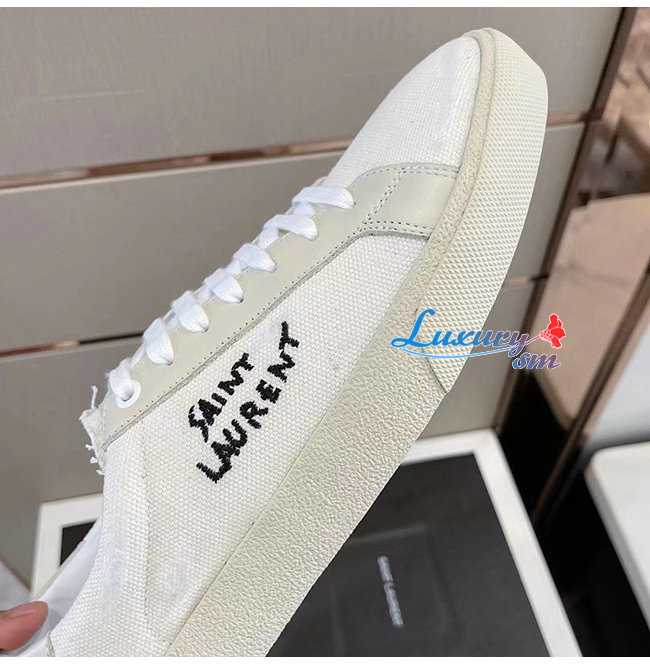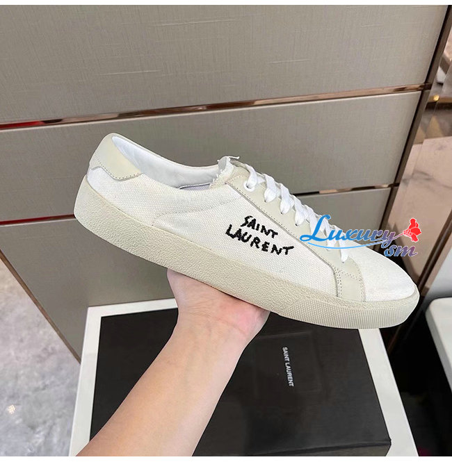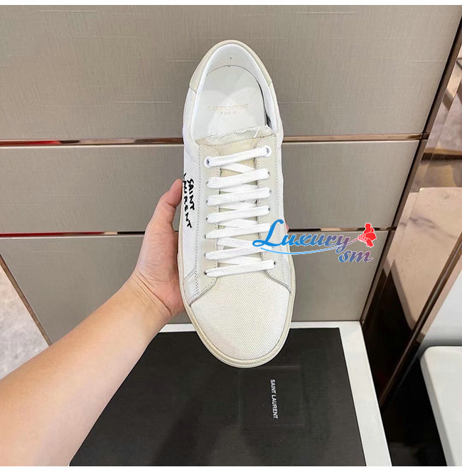 SAINT LAURENT-611106 생 로랑 화이트 코트 클래식 SL/06 자수 장식 스니커즈 남성용