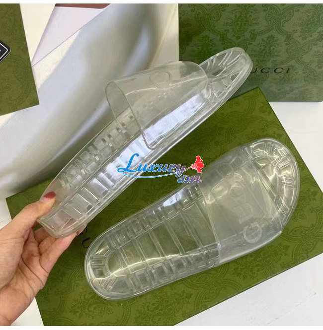 GUCCI-657983 8300 구찌 투명 구찌 로고 장식 슬라이드 샌들 남여공용
