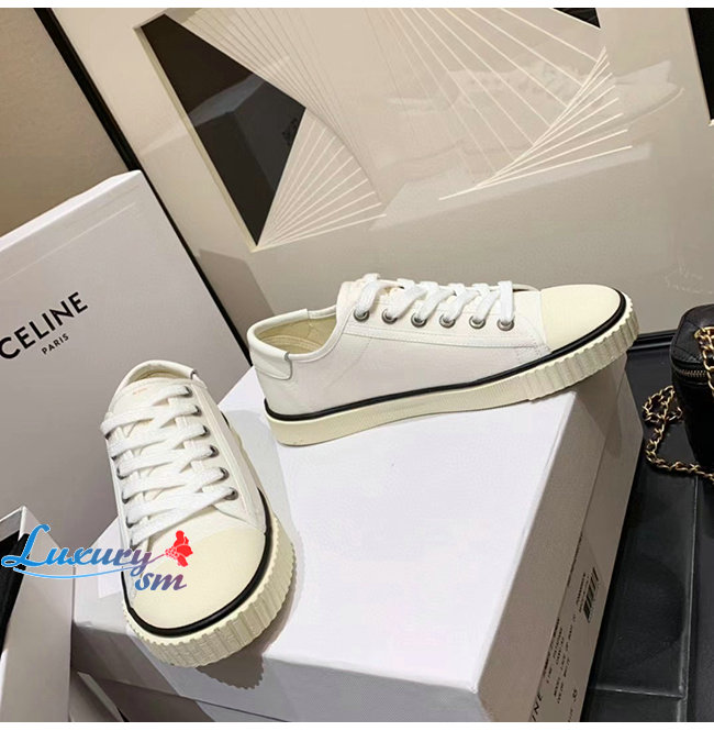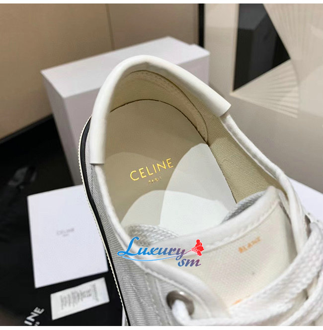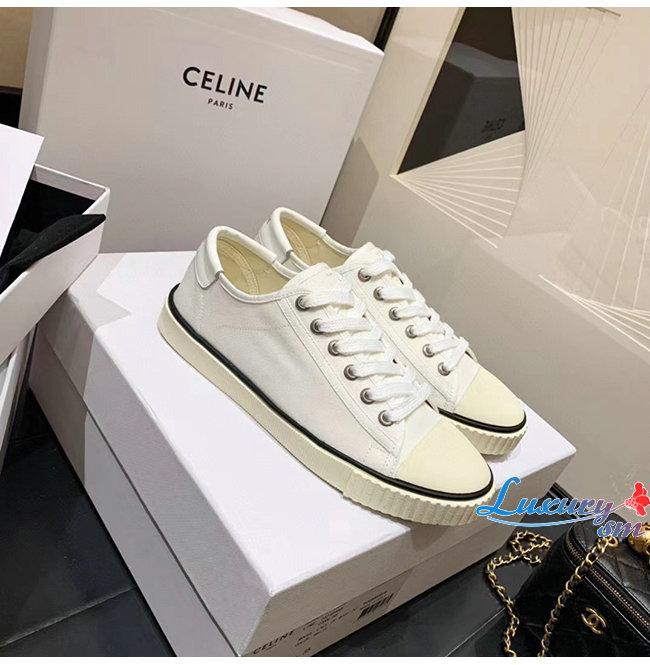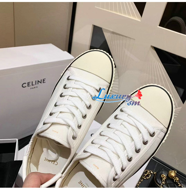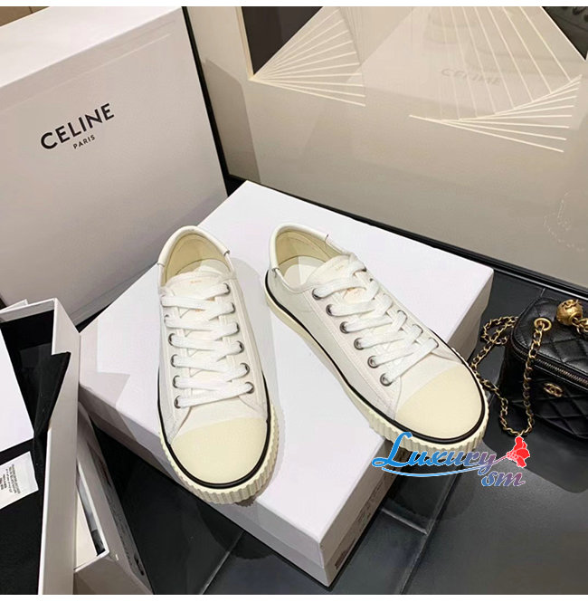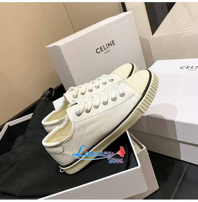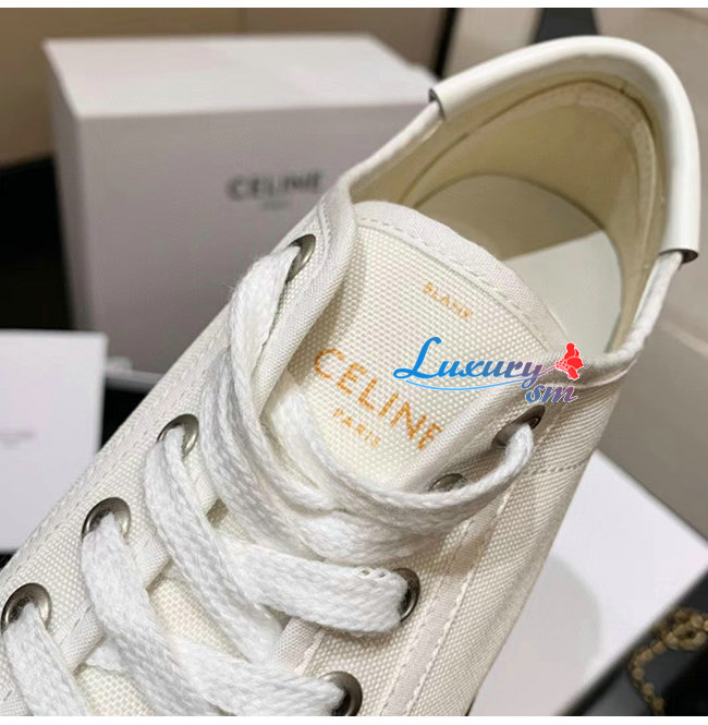 CELINE-337812 셀린느 오프화이트 캔버스 로우탑 레이스업 스니커즈 여성용