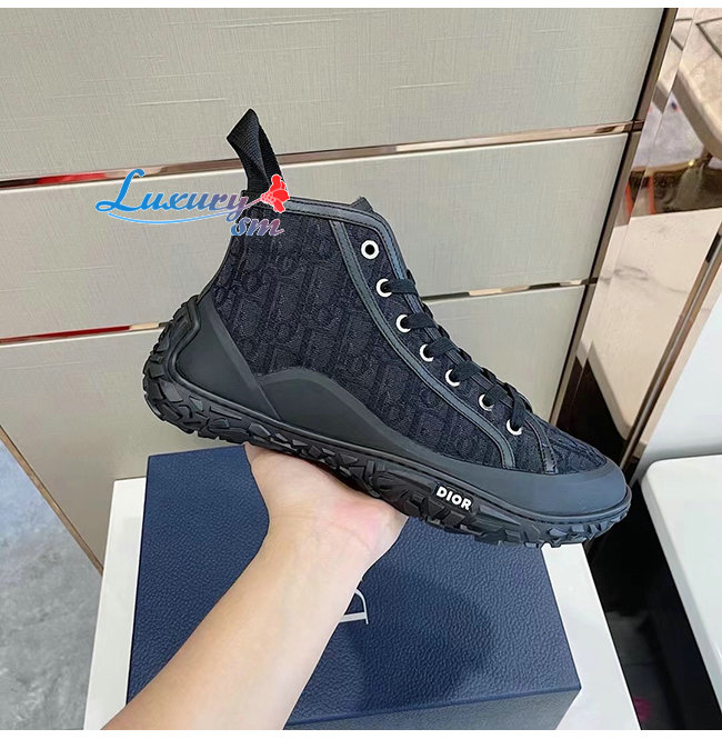 DIOR-3SH131 디올 블랙 Dior Oblique 자카드 B28 하이탑 스니커즈 남성용