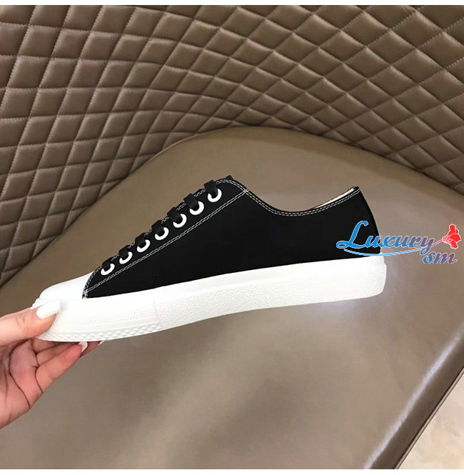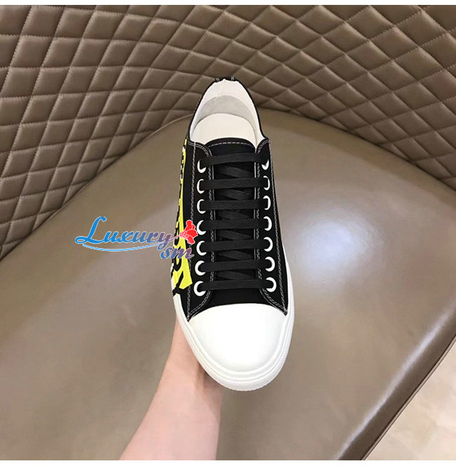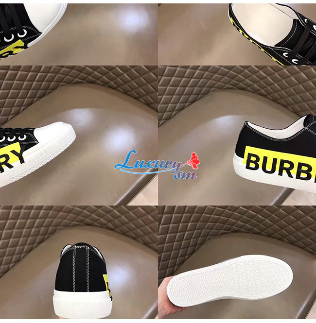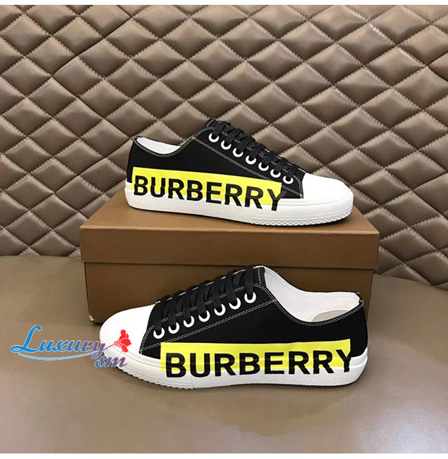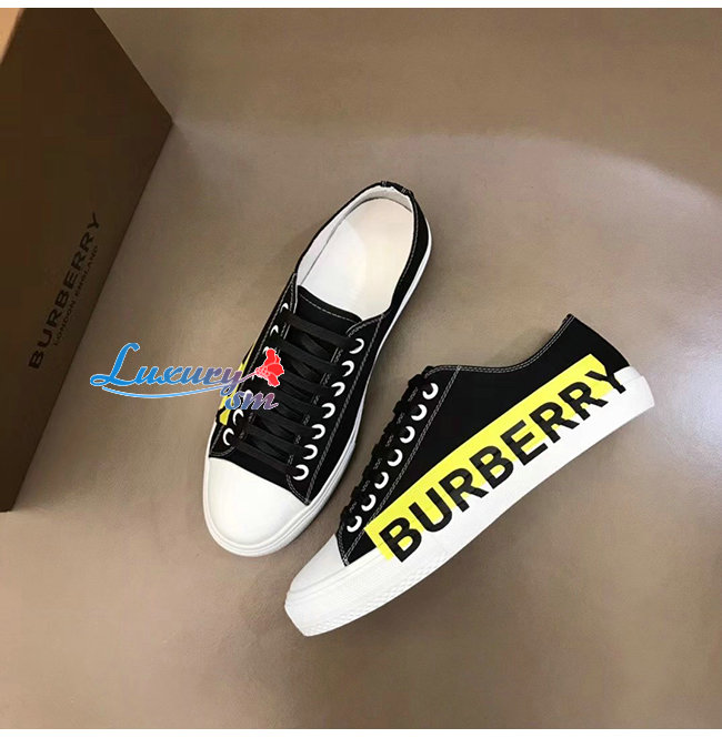 BURBERRY-80383471 버버리 블랙/옐로우 로고 프린트 투톤 코튼 개버딘 스니커즈