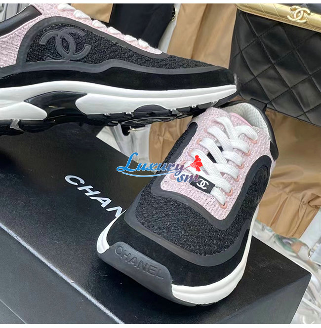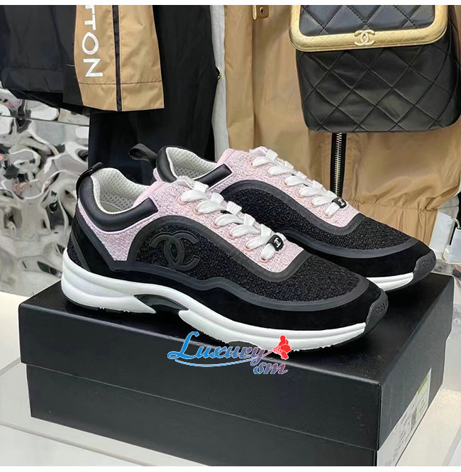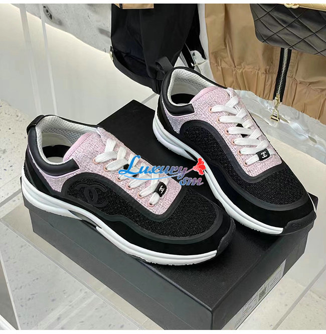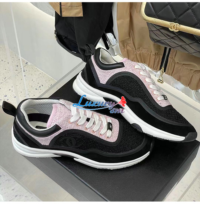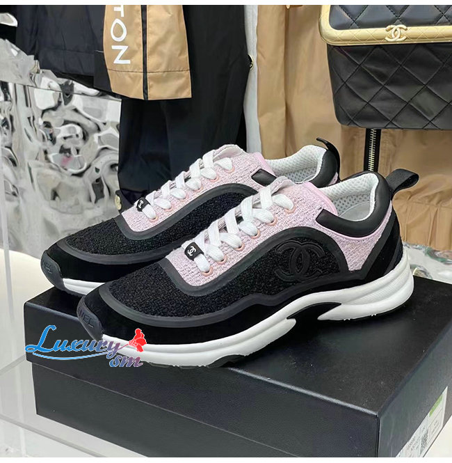 CHANEL-G34360 샤넬 그레이/핑크 트위드 스니커즈 여성용