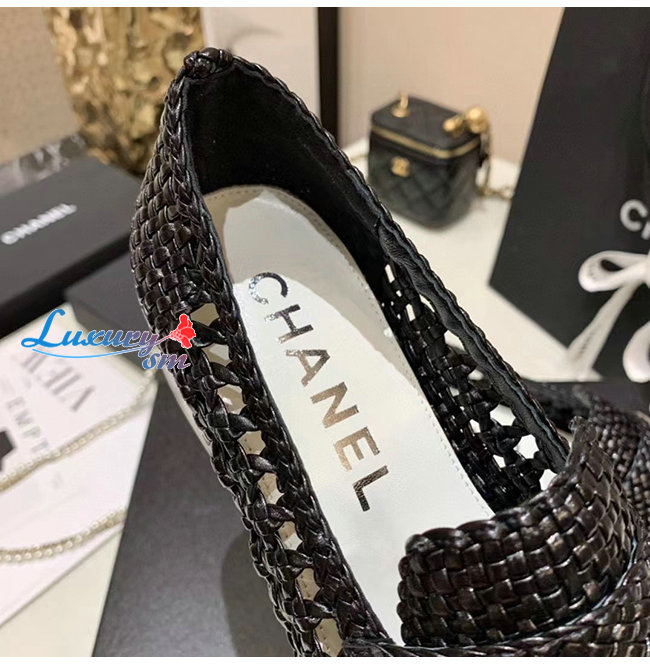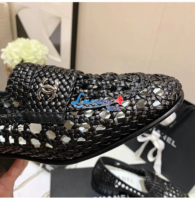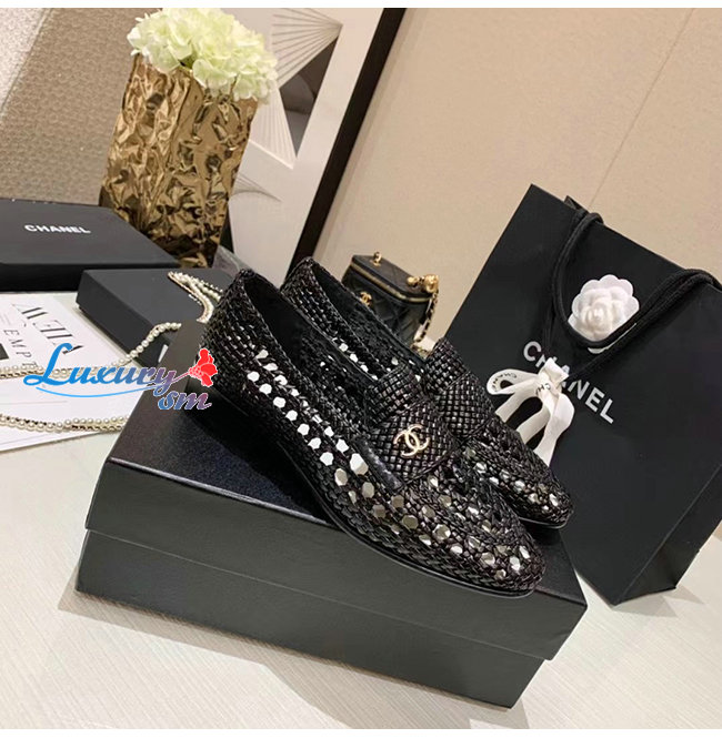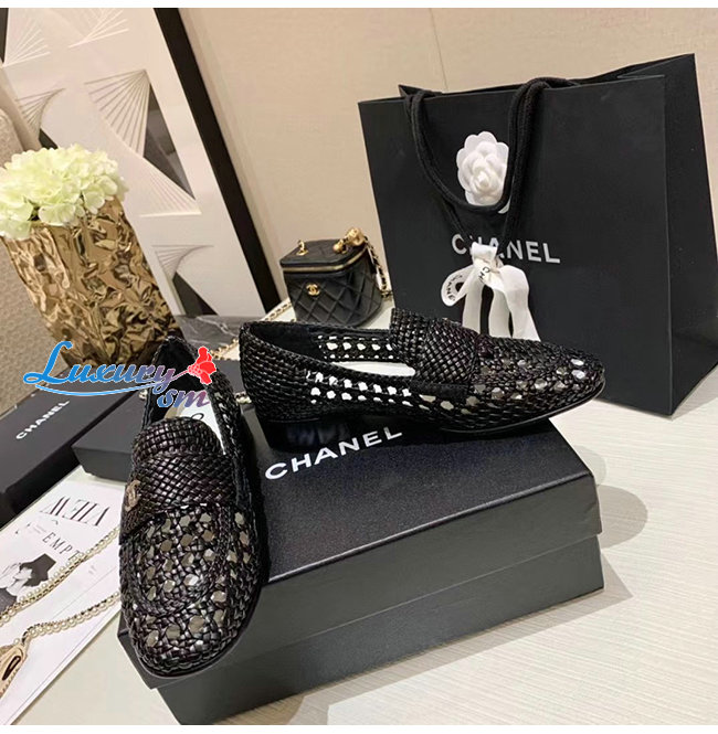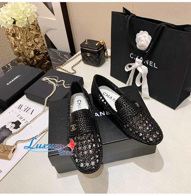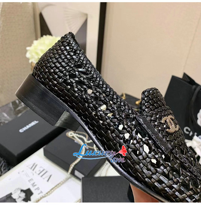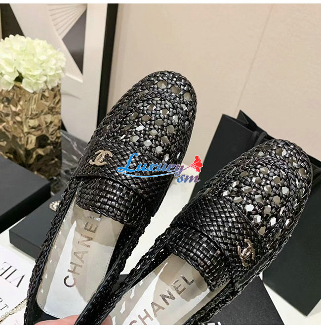 CHANEL-G37403 샤넬 블랙 유광 브레이드 고트스킨 로퍼 여성용