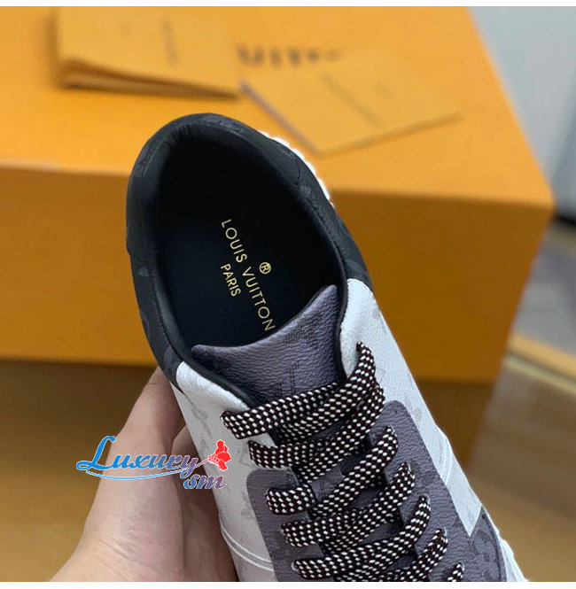 LOUIS VUITTON-1A3CWG 루이비통 모노그램 리버스 스웨이드 송아지 가죽 화이트 런 어웨이 스니커즈