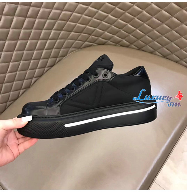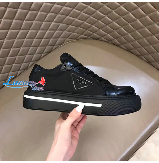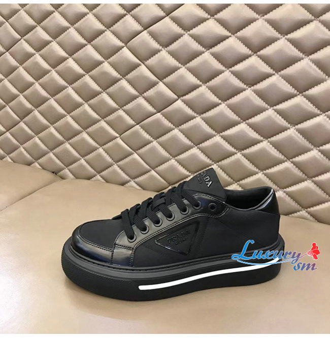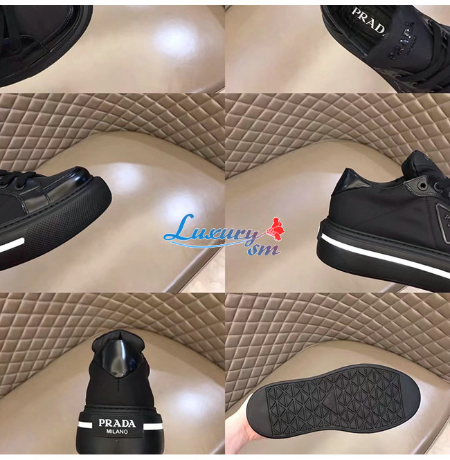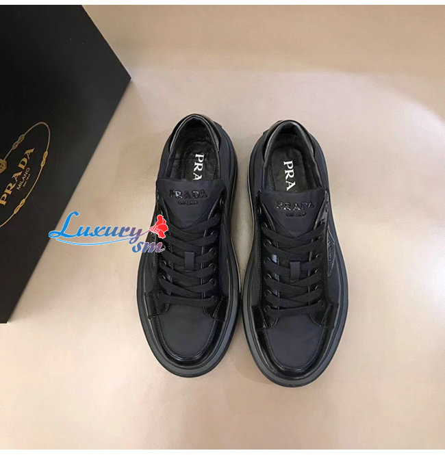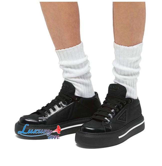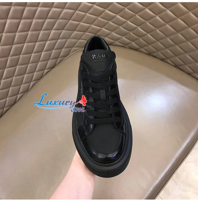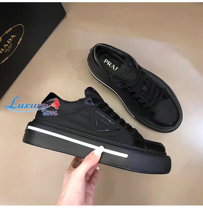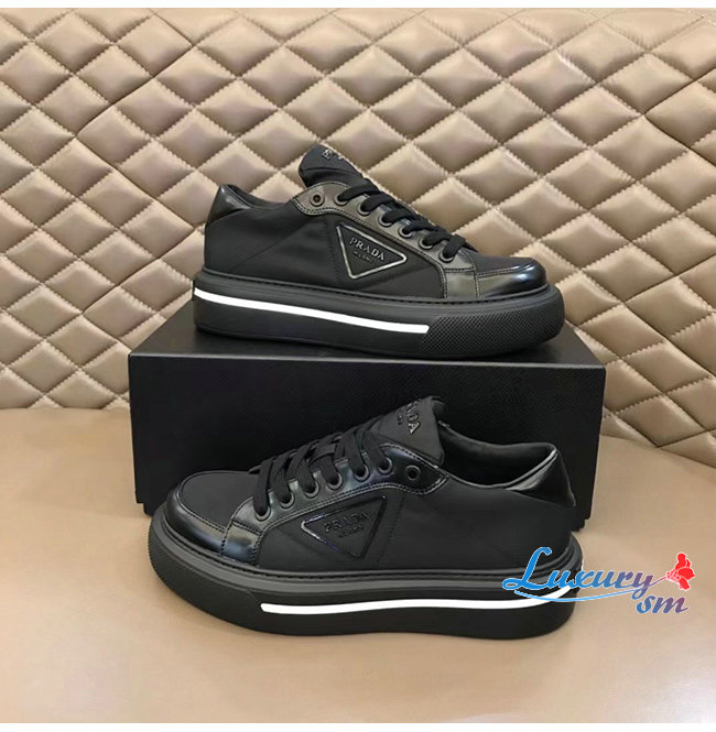 PRADA-1E661M 프라다 블랙 매크로 리나일론 브러시드 가죽 스니커즈