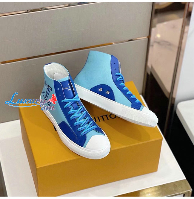 LOUIS VUITTON-1A8XVS 루이비통 블루 송아지 가죽 타투 스니커 부츠