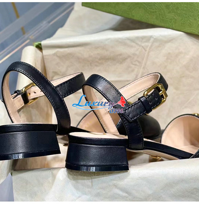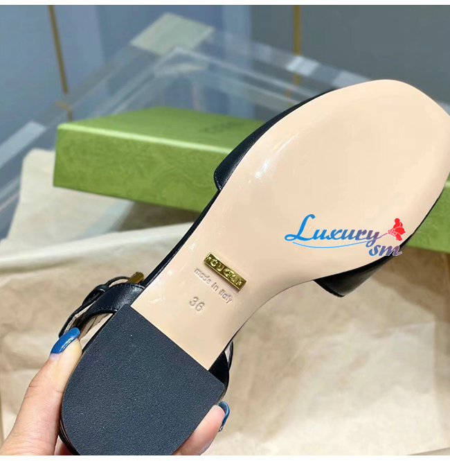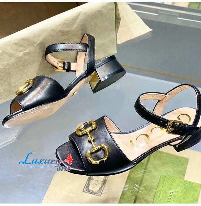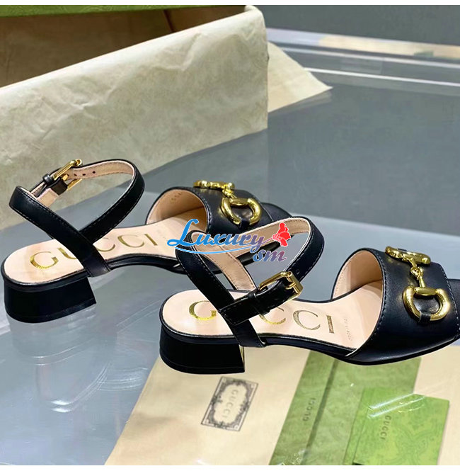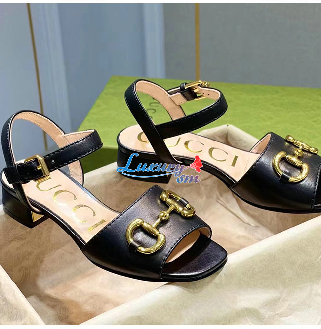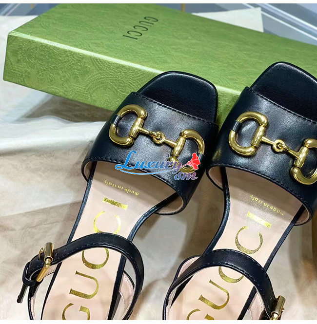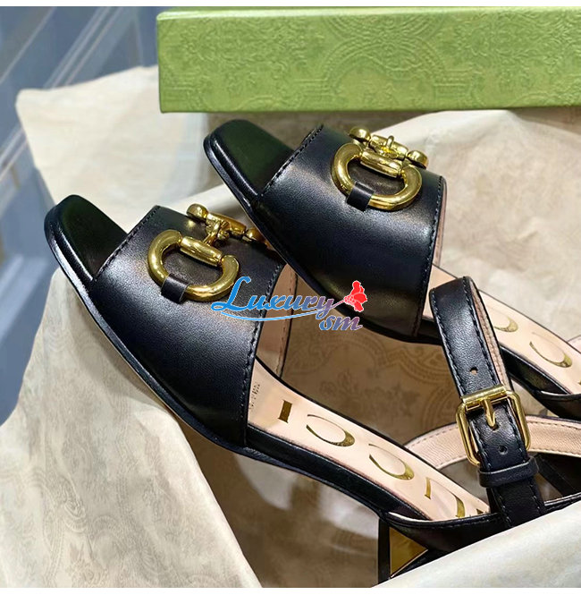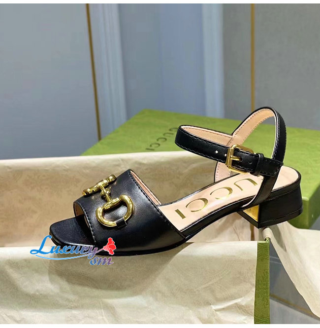 GUCCI-655413 1000 구찌 블랙 가죽 홀스빗 샌들
