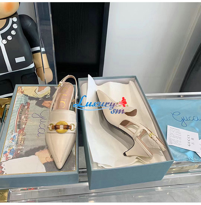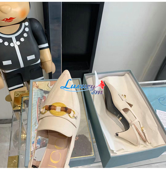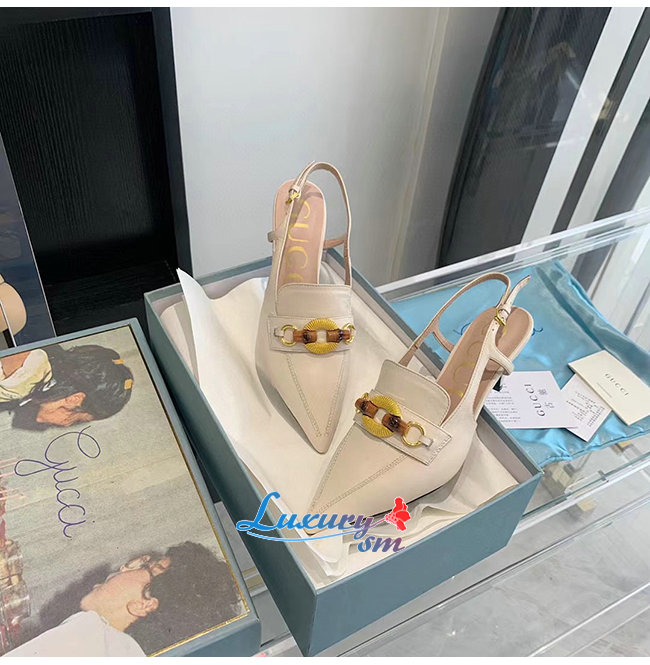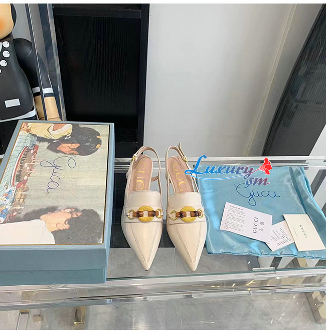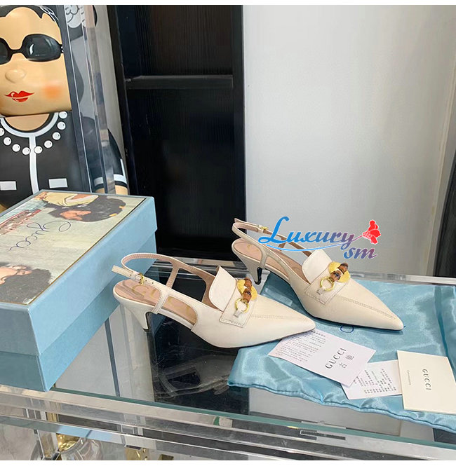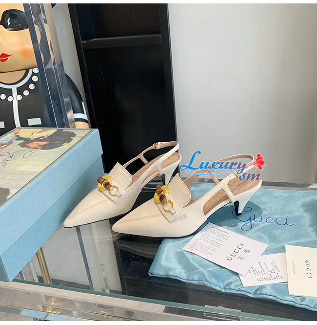 GUCCI-658818 9022 구찌 화이트 가죽 뱀부 홀스빗 펌프스