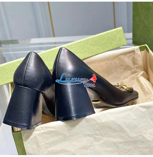 GUCCI-643886 1000 구찌 블랙 가죽 홀스빗 미드힐 펌프스
