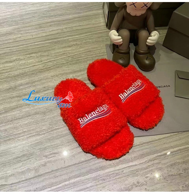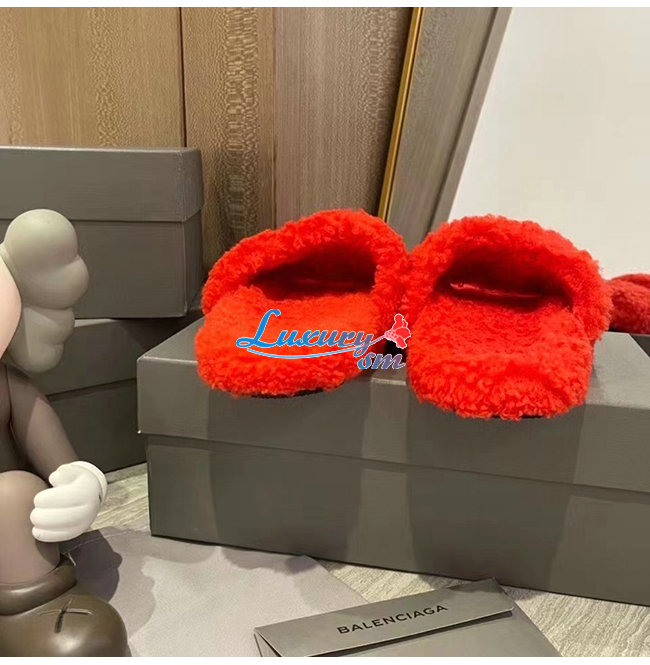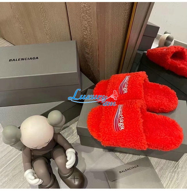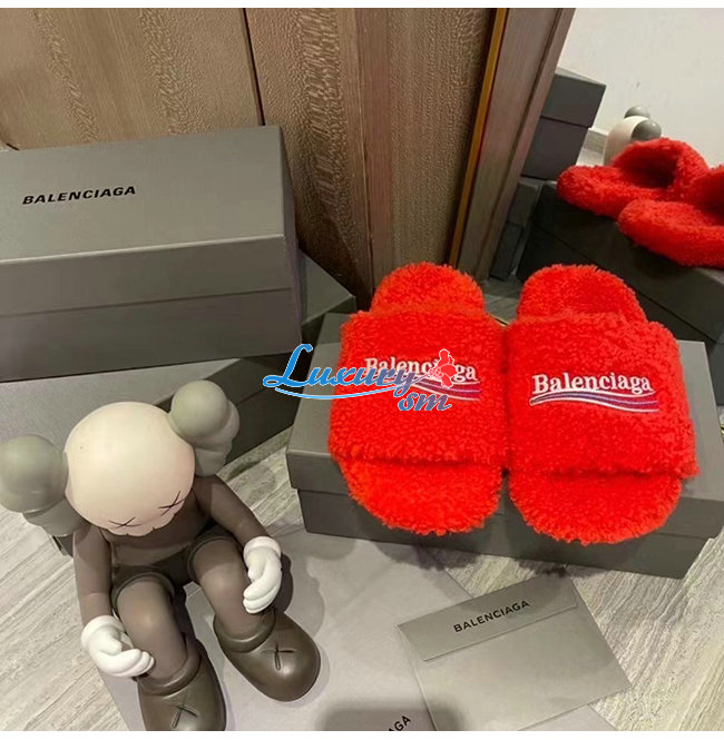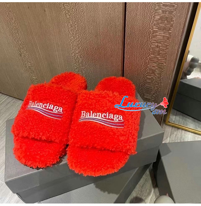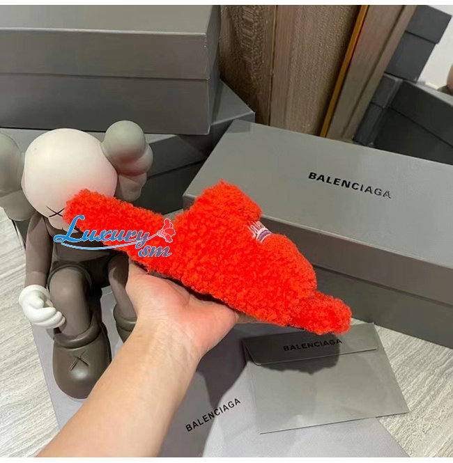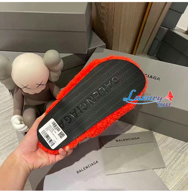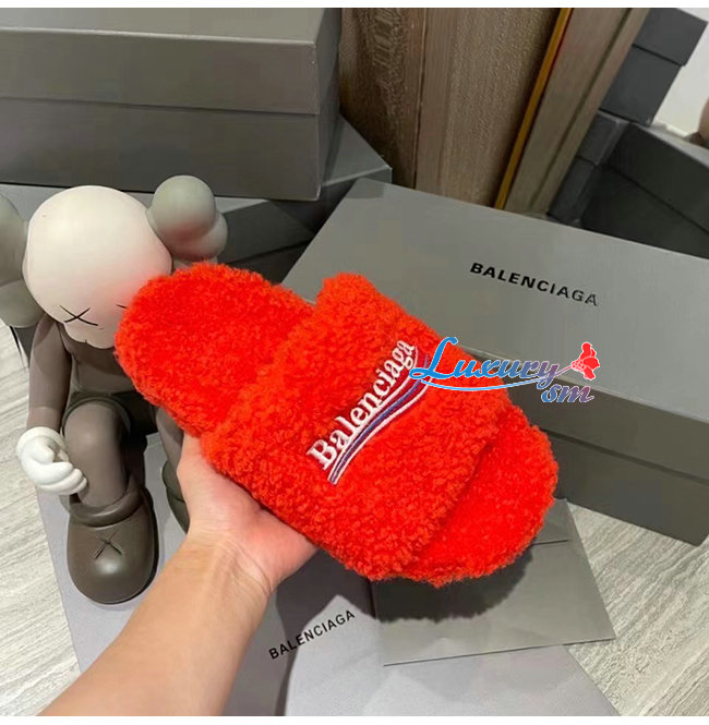 BALENCIAGA-654261 발렌시아가 오렌지 퍼리 슬라이드 샌들 여성용