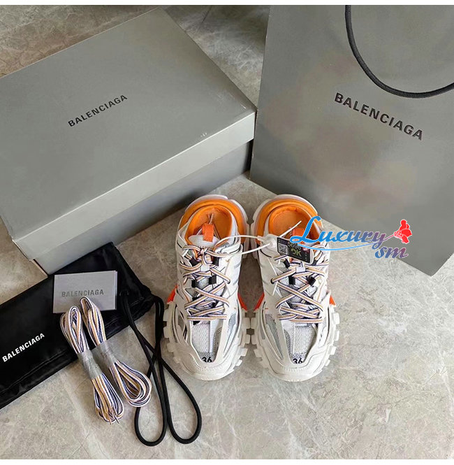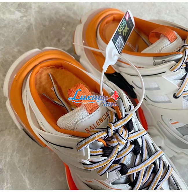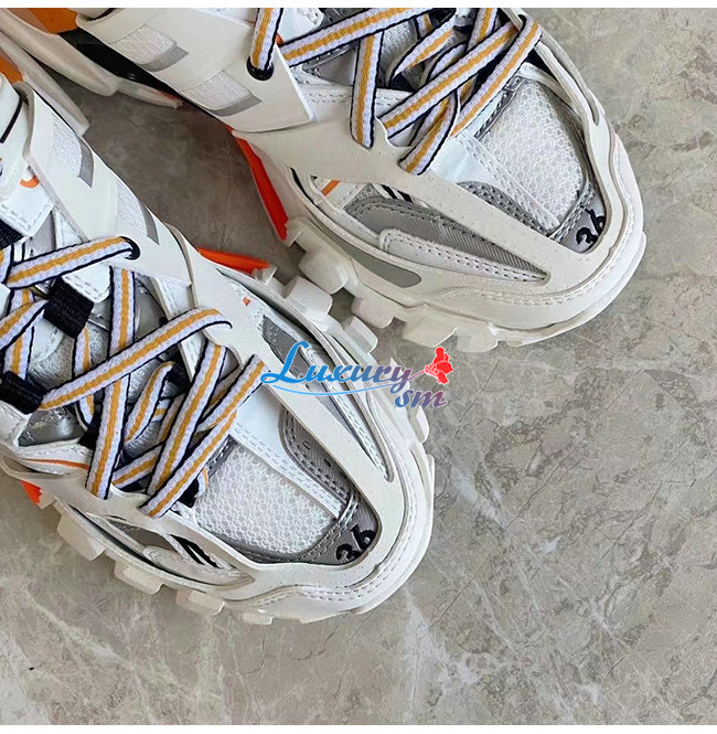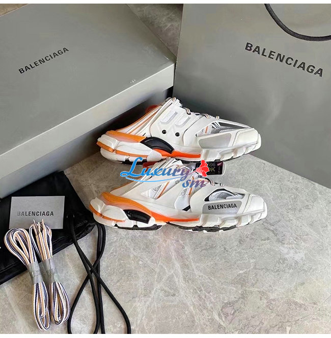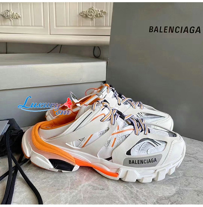 BALENCIAGA-653814 발렌시아가 오렌지/화이트 나일론 TRACK 뮬 남여공용