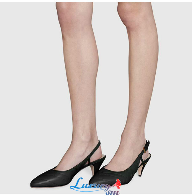 레더 쉐브론 모티브 슬링백 펌프스.