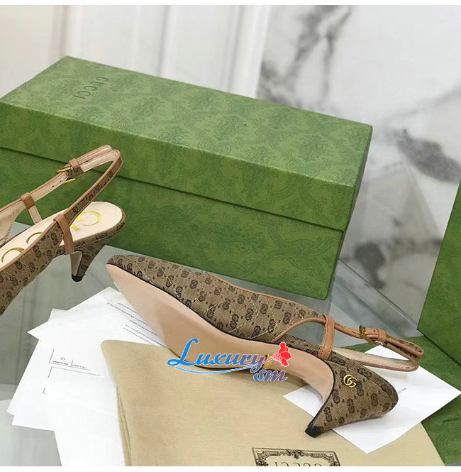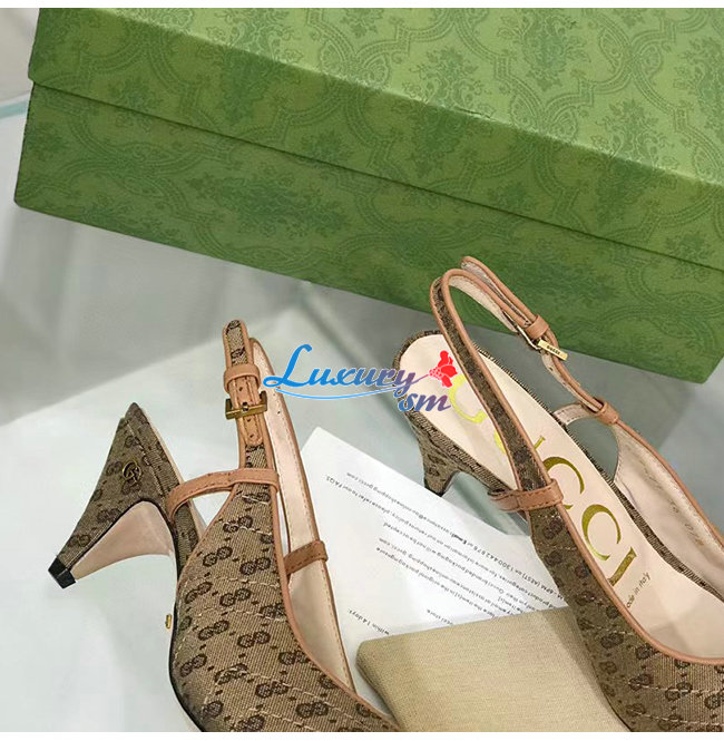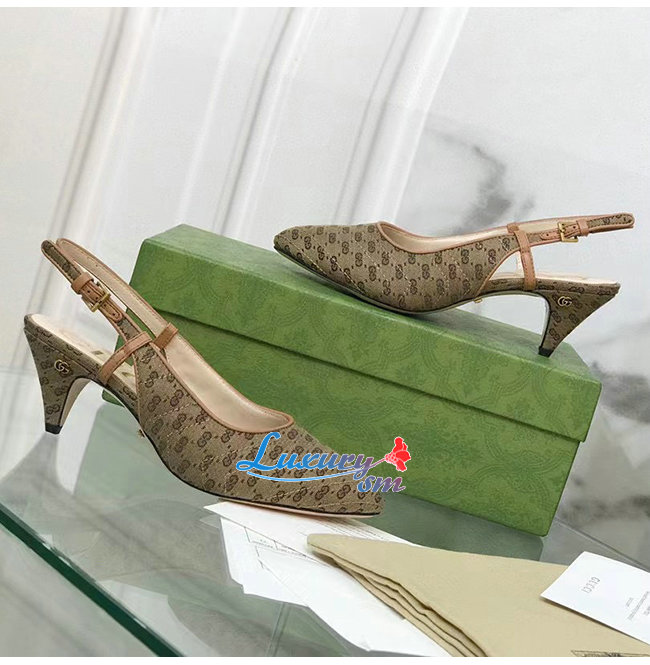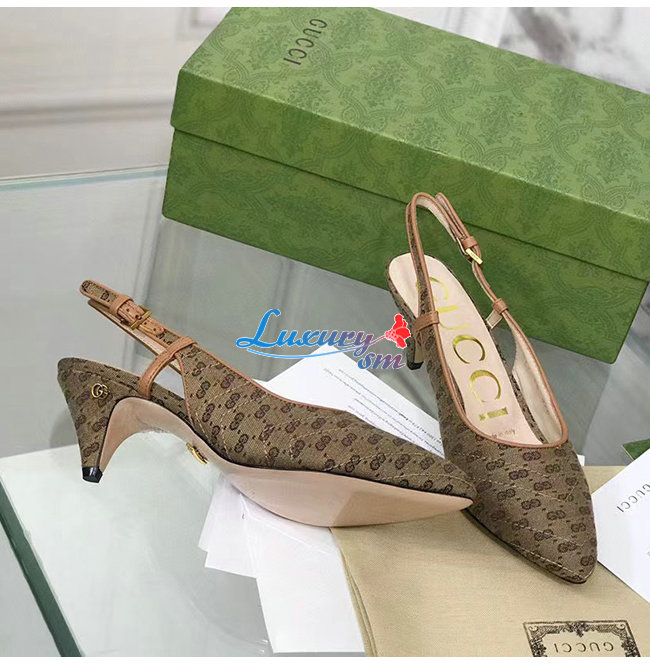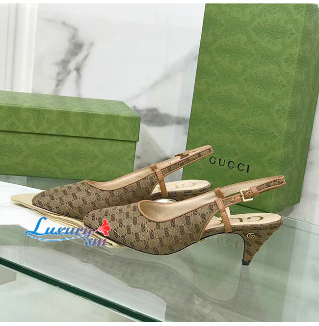수프림 캔버스로 제작한 슬링백 펌프스, 구찌오 구찌