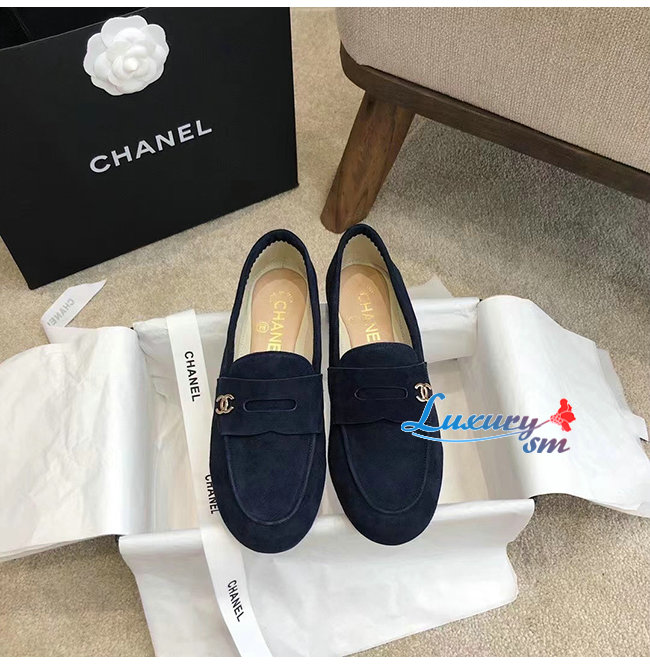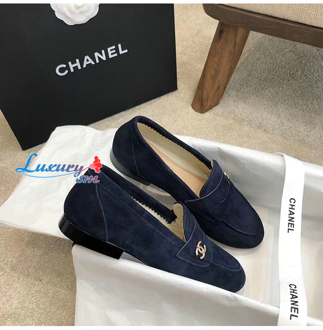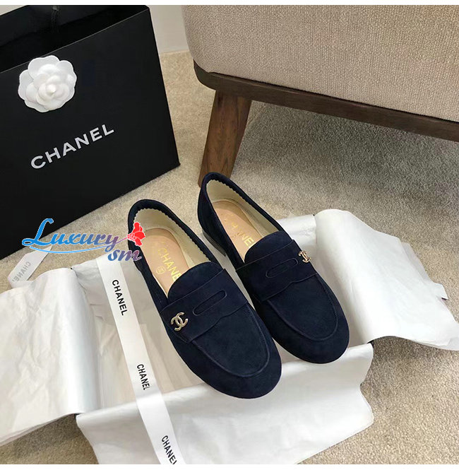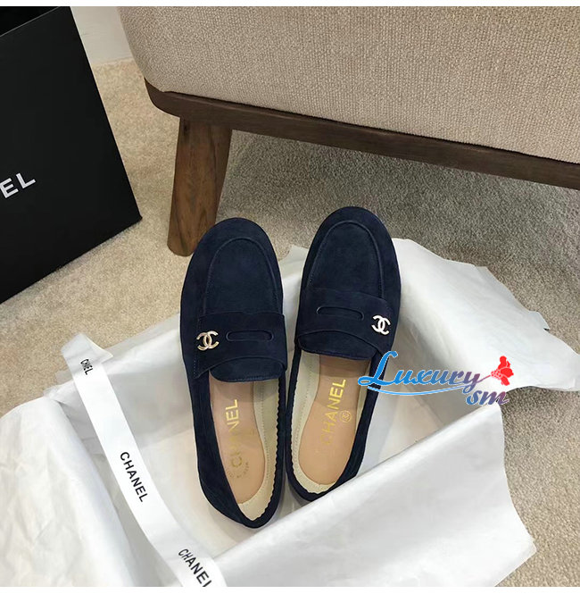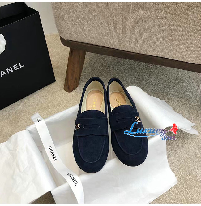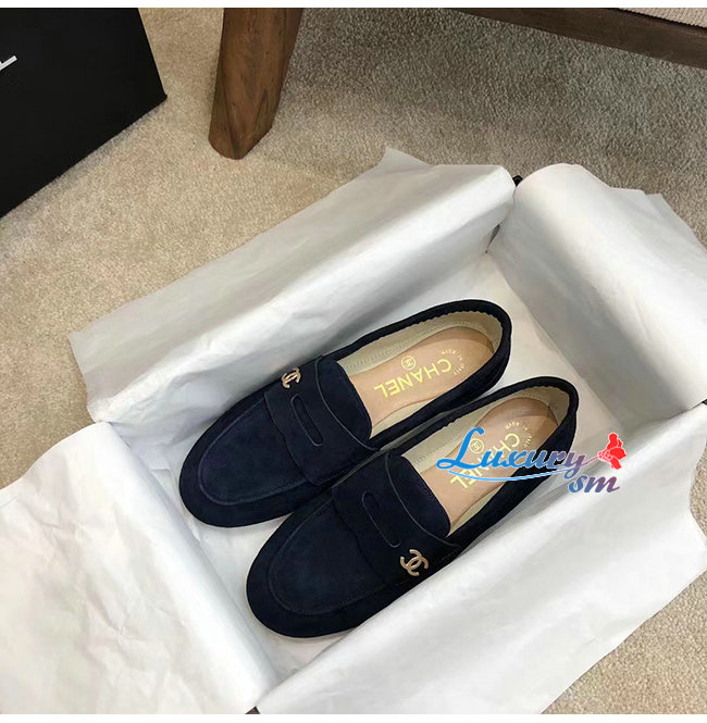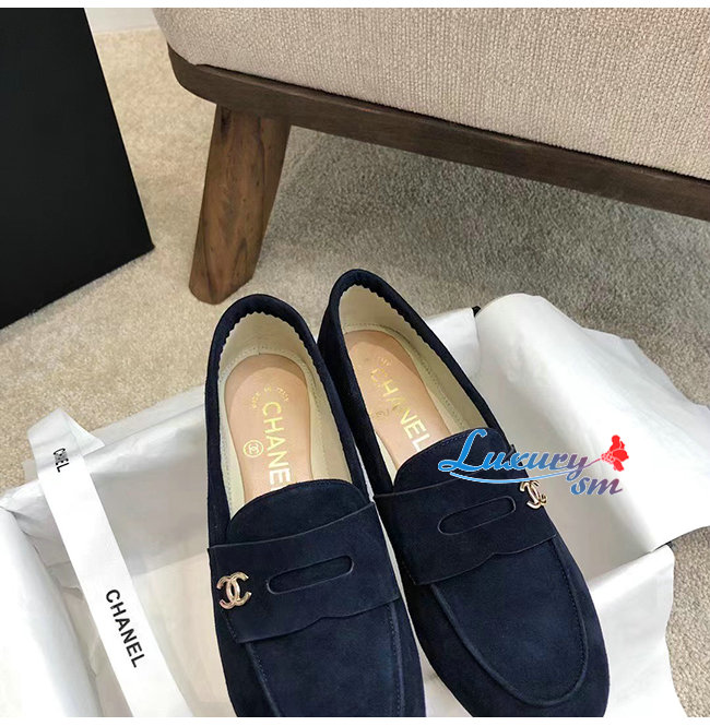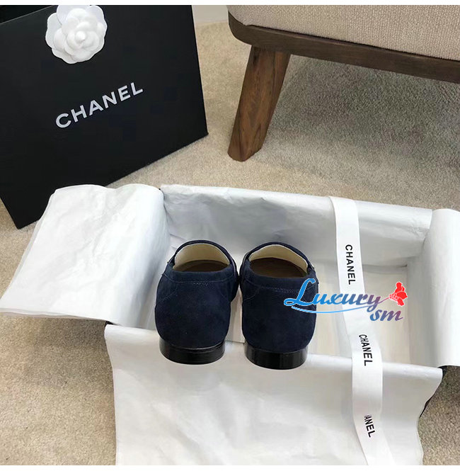 CHANEL-G37451 샤넬 네이비 스웨이드 카프스킨 로퍼 여성용