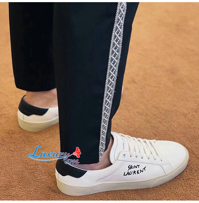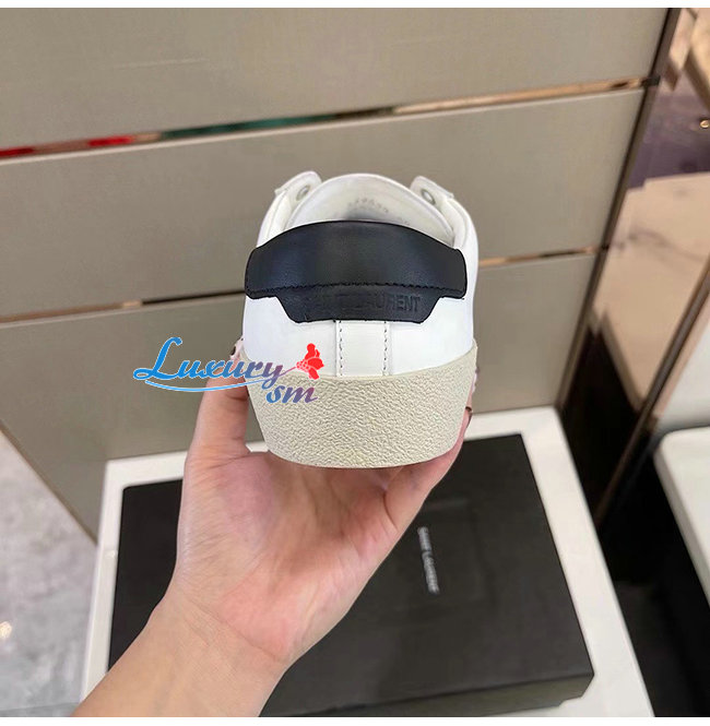 SAINT LAURENT-610685 생 로랑 화이트/블랙 송아지 가죽 SL/06 스니커즈 남성용